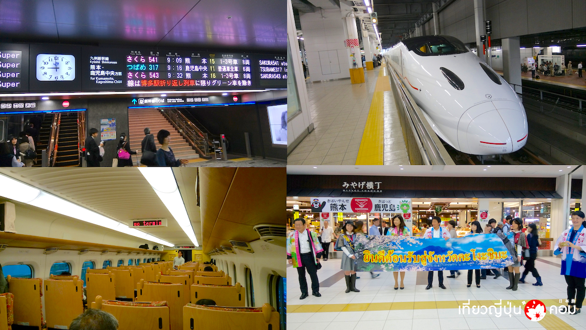 เดินทางถึงสนามบินฟุกุโอกะ เริ่มต้นการเดินทางสู่จังหวัดคาโงะชิมะที่สถานี Hakata โดยสารรถไฟชิงคังเซน ขบวน Tsubame ถึงสถานี Kagoshima-Chuo ใช้เวลาเดินทาง 2 ชม. 20 นาที สามารถใช้ All Kyushu Area Pass ขึ้นได้