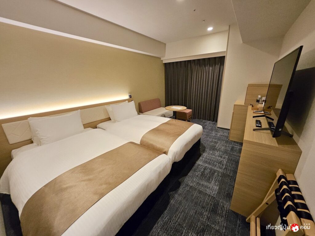 โรงแรมแห่งใหม่ใจกลางเมืองคุมาโมโตะ ไม่ไกลจากปราสาทคุมาโมโตะ และ Sakura Machi โรงแรมตกแต่งหรูหรา และมีสิ่งอำนวยความสะดวกสบายครบครัน ห้องพักราคาเริ่มต้น 2,766 บาท สำหรับ Moderate Twin Room ถ้าเลือกพักแบบ Late Check-in ราคาจะถูกลงกว่านี้อีก แต่จะไม่สามารถเลือกประเภทห้องล่วงหน้าได้