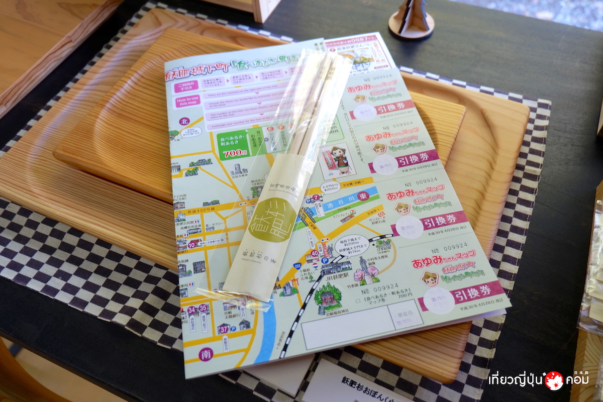 ความพิเศษของที่นี่คือ เมื่อเราซื้อ แผนที่อายูมิจัง (Ayumi-chan Map) นั้นจะมีสิ่งที่แถมมาพร้อมกับชุดคูปอง ที่สามารถแลกเป็นตั๋วเข้าค่าผ่านประตู สามารถเข้าได้ 3 สถานที่ ราคา 600 เยนและตั๋วรวม 7 สถานที่ราคา 1,100 เยน คูปองอาหาร และของที่ระลึกในโอบิ เพิ่มความสนุกสนานในการเดินเล่นในเมืองเหมือนการเก็บอาร์ซี แค่เดินเล่นเอาคูปองไปแลกเป็นของที่ระลึกก็คุ้มแล้ว