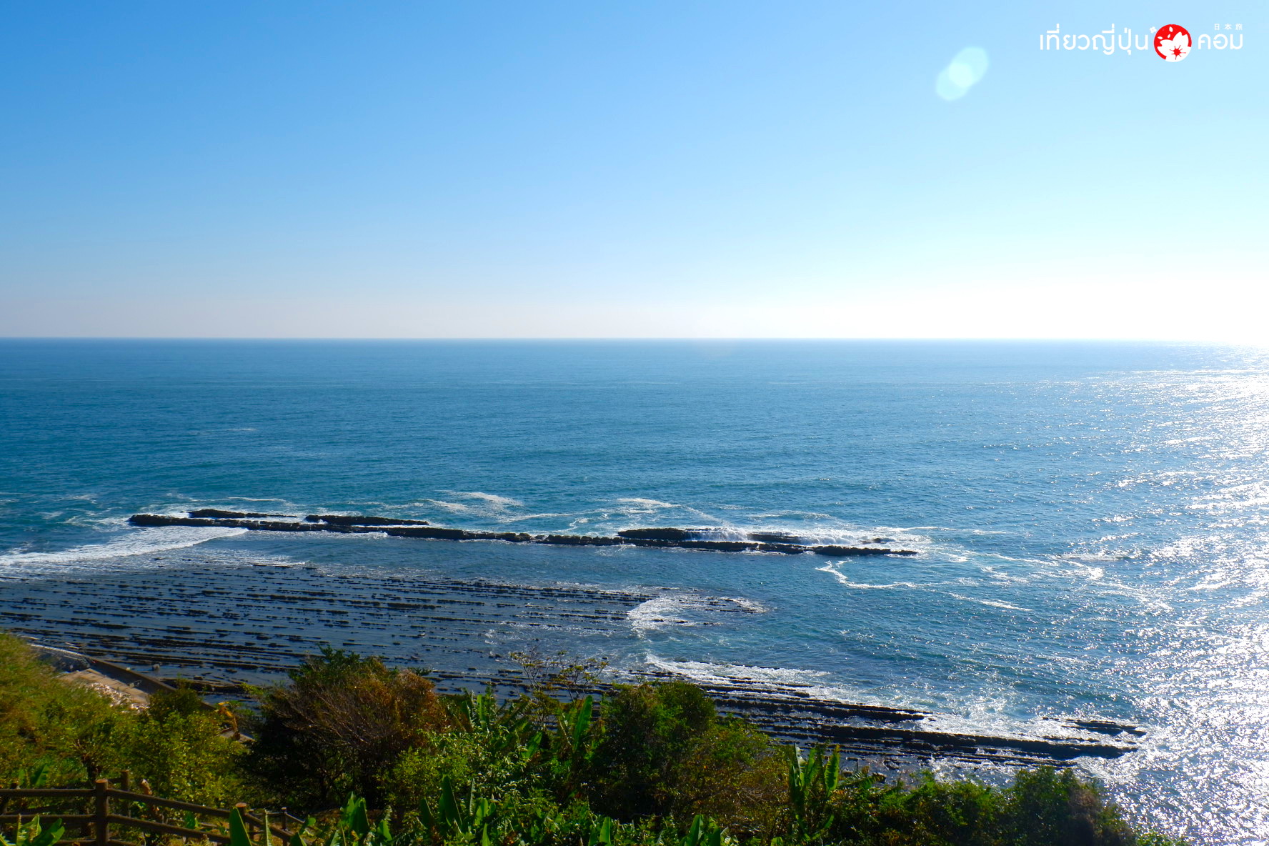 บรรยากาศสวยๆของทะเลมหาสมุทรแปซิฟิก จากทางด้านหน้าของศาลเจ้า Udo