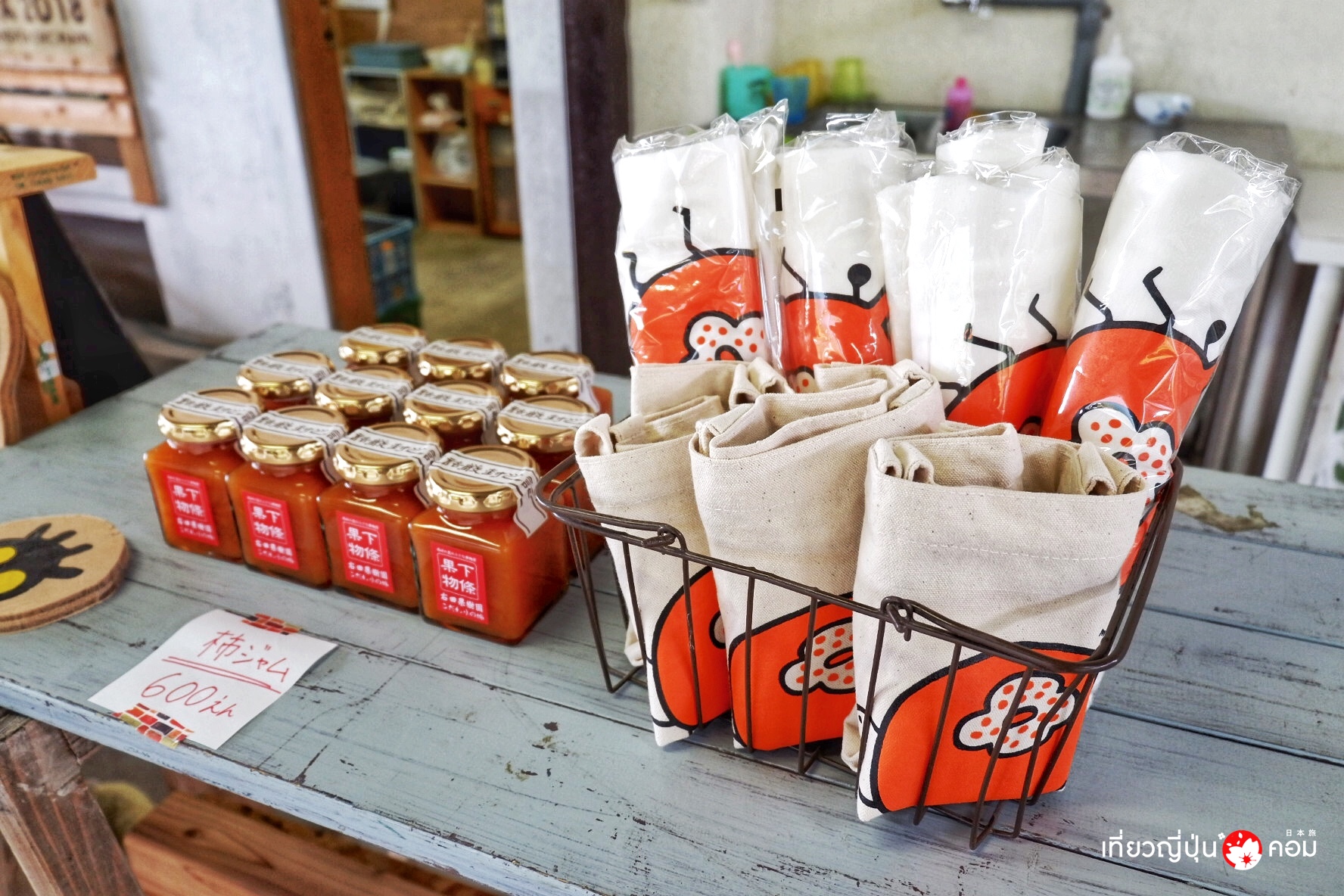 นอกจากจะสามารถซื้อลูกพลับสดๆ กลับบ้านได้แล้ว ที่นี่ก็ยังมีแยมแปรรูปจากผลลูกพลับ อีกทั้งของที่ระลึกเล็กๆน้อย