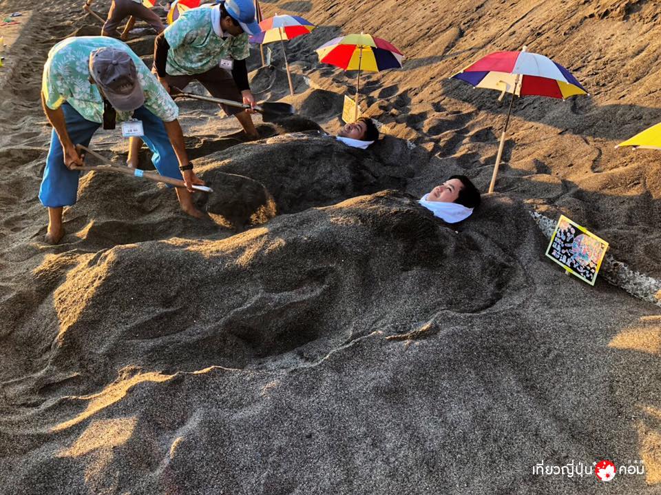 ปิดท้ายด้วยไฮไลท์ของการมาเยือนเมืองอิบุซึกิ ที่จะพลาดไม่ได้นั่นก็คือ “ซุนะมุชิอนเซ็น” หรือการอบอนเซ็นทรายร้อนแบบธรรมชาติ ที่ Yamakawa Natural Sand Bath : Sayuri ต้นตำรับเพียงแห่งเดียวในโลก โดยการนอนลงบนทรายร้อน เพื่อรับเอาไอน้ำประมาณ 10-15 นาที มีผลในการช่วยล้างพิษและช่วยเพิ่มระบบการไหลเวียนโลหิตให้เลือดลมไหลเวียนดียิ่งขึ้น อีกทั้งยังช่วยบรรเทาอาการปวดตามเส้นประสาทอีกด้วย