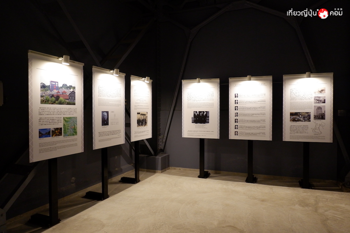 บอร์ดนิทรรศการจัดแสดงประวัติการก่อตั้งบริษัทภายในพิพิธภัณฑ์โรงกลั่นวิสกี้ Hombo Shuzo