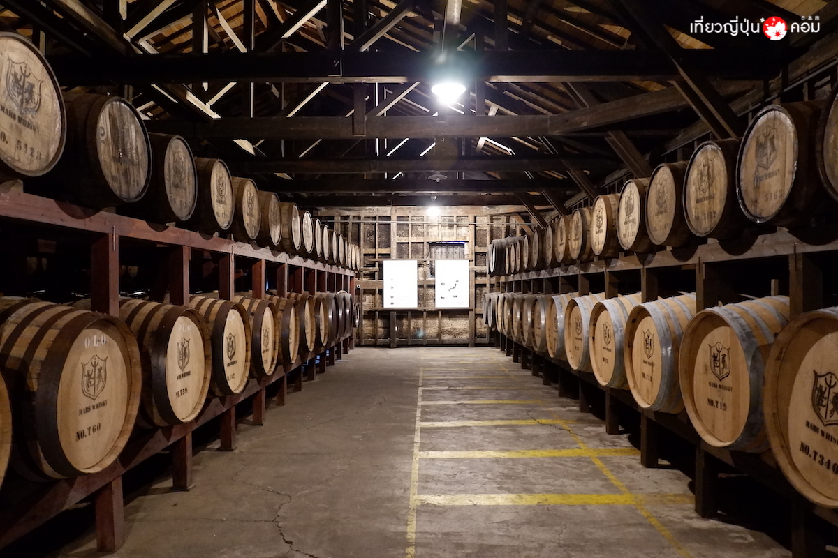 จากนั้นวิทยากรได้นำเข้าโรงบ่มวิสกี้ในห้องเก็บอุณหภูมิโดยจะทำการบ่มเอาไว้ในถังไม้โอ๊กเพื่อให้ได้รสชาติที่เป็นมาตรฐาน