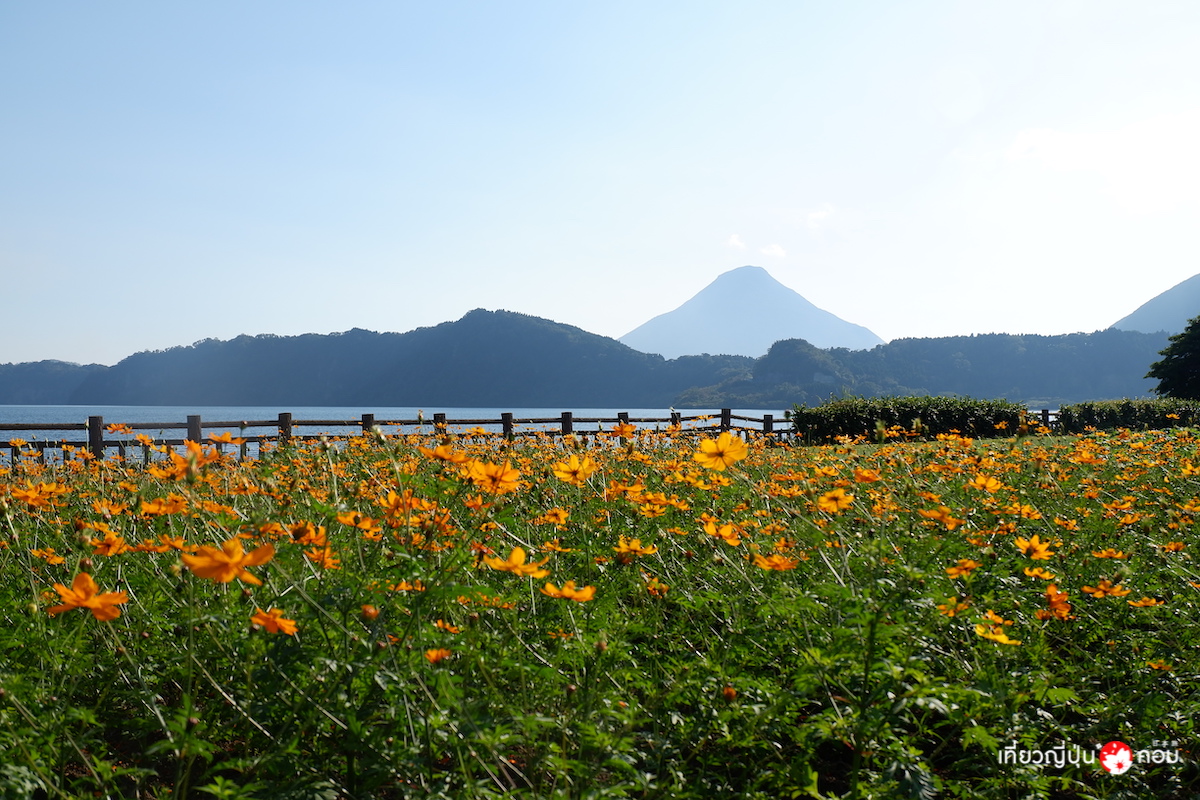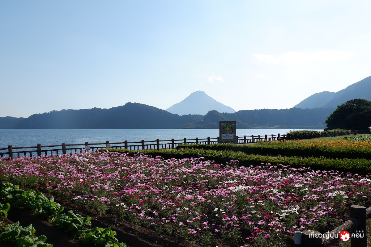 จากจุดนี้ในวันที่อากาศดี สามารถมองเห็น ภูเขาไฟไคมอนดาเกะ (Kaimondake) หรือที่ชาวบ้านเรียกกันว่า ภูเขาไฟซัตสึมะฟูจิ (Satsumafuji) ริมทะเลสาบยังมีสวนดอกไม้สวยๆตามฤดูกาล เหมาะแก่การมานั่งสัมผัสกับบรรยากาศดีๆ