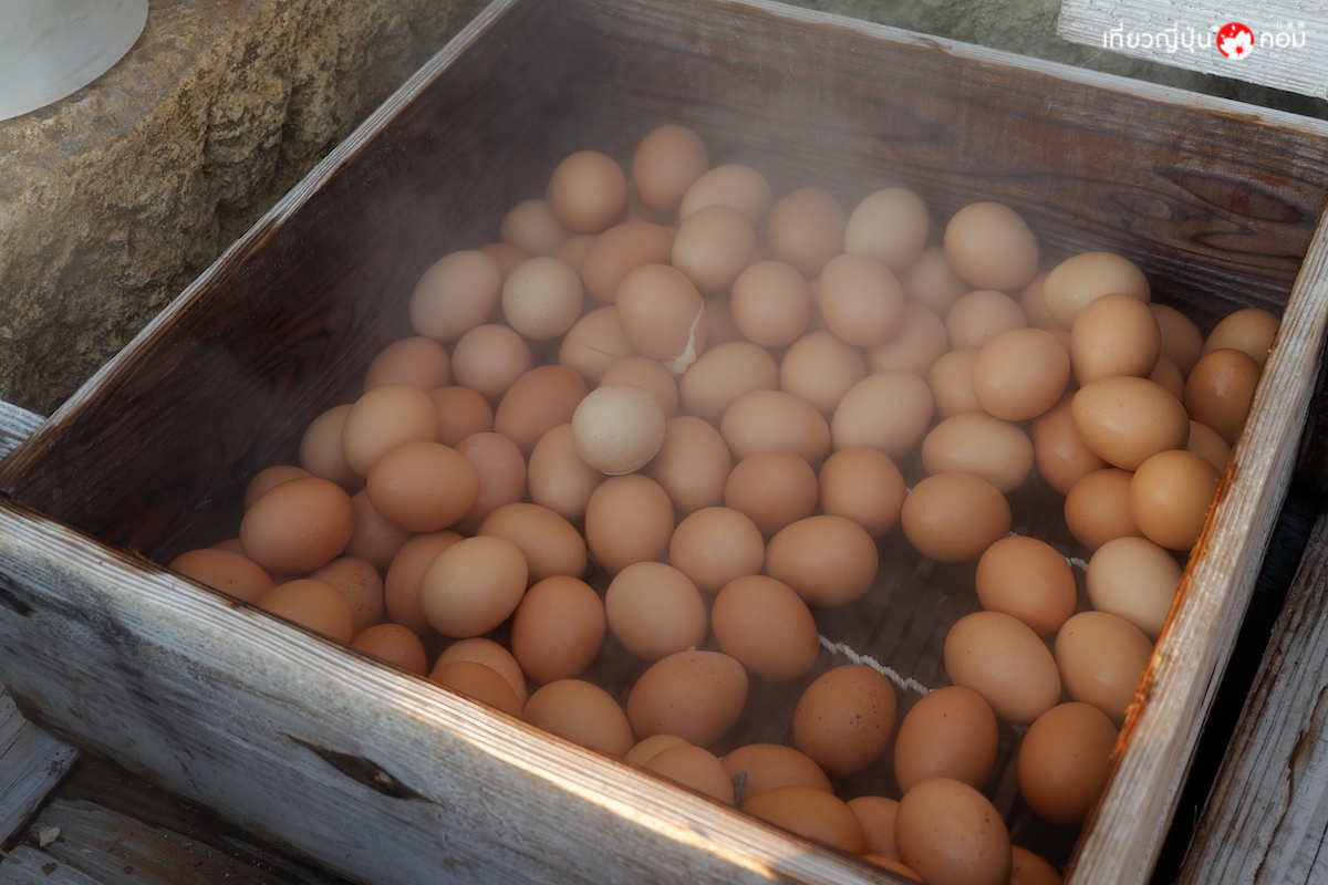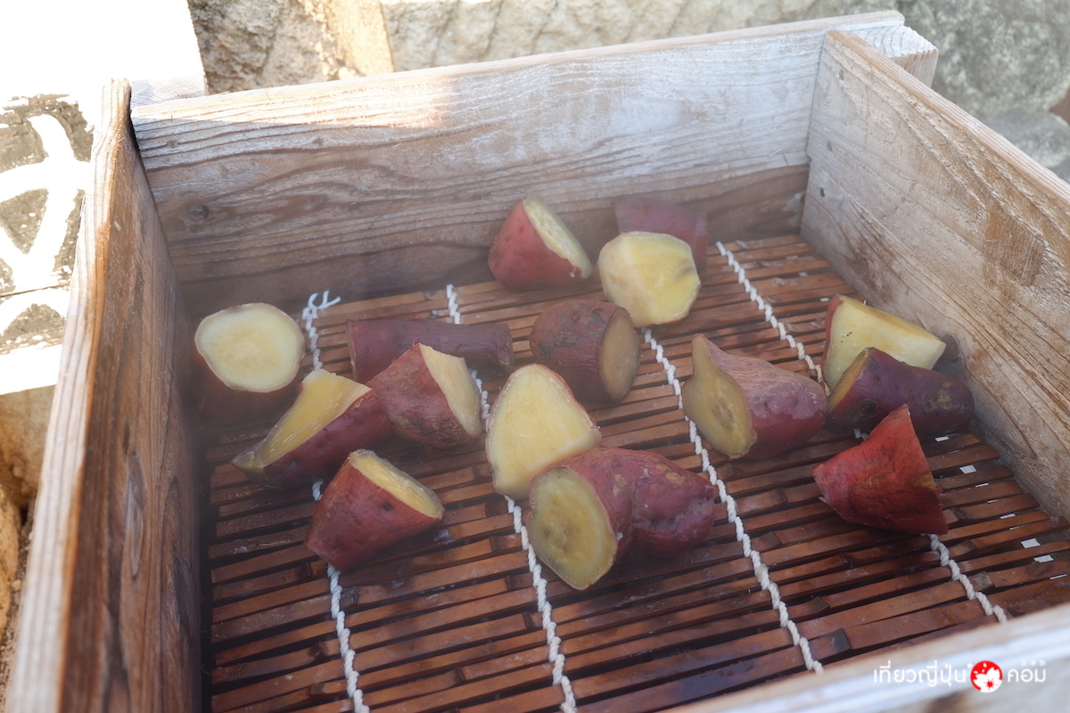 มันหวานและไข่นึ่งที่อบจากความร้อนของไอน้ำของอนเซ็นทรายร้อน