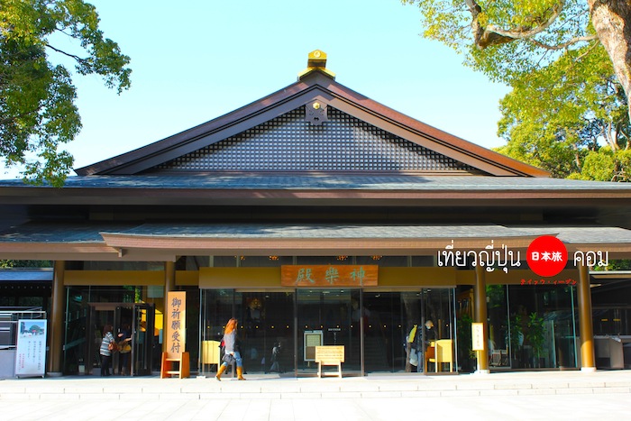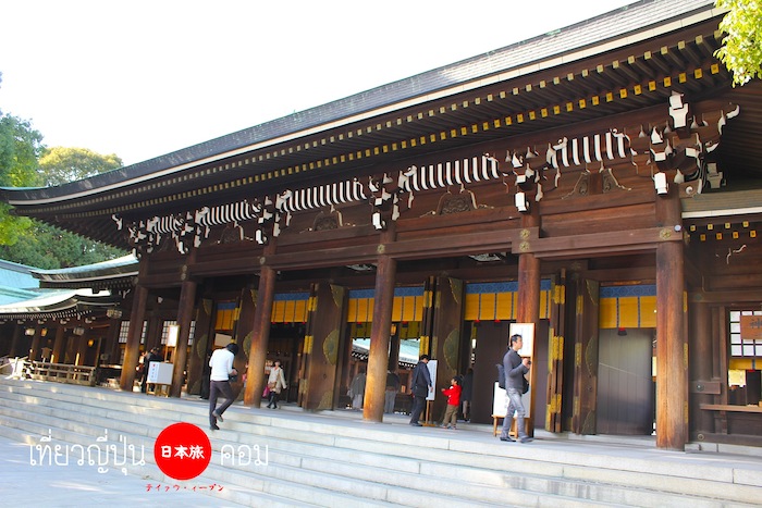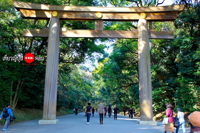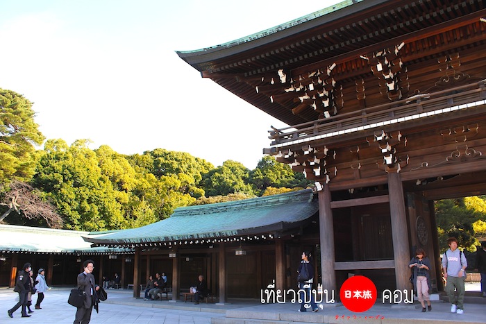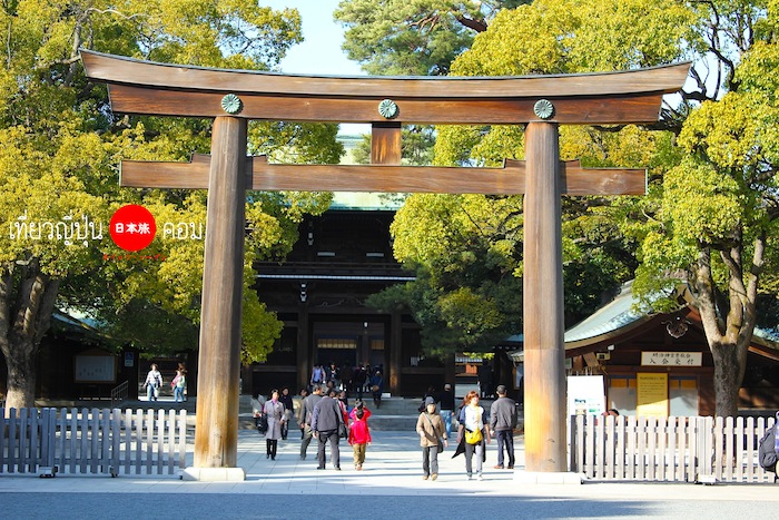 ศาลเจ้า Meiji Jingu 明治神宮 เป็นศาลเจ้าชินโต สร้งขึ้นเพื่ออุทิศแก่ดวงวิญญาณของจักรพรรดิ Meiji และจักรพรรดินี Shoken โดยเริ่มสร้างครั้งแรกเมื่อปี 1920 มีพื้นที่ทั้งหมดกว่า 700,000 ตารางกิโลเมตร ได้ปลูกต้นไม้นานาพันธุ์กง่า 100,000 ต้น ติดกับสวนสาธารณะ Yoyogi และใกล้กับสถานที่นัดพบของวัยรุ่นชื่อดังอย่าง Harajuku