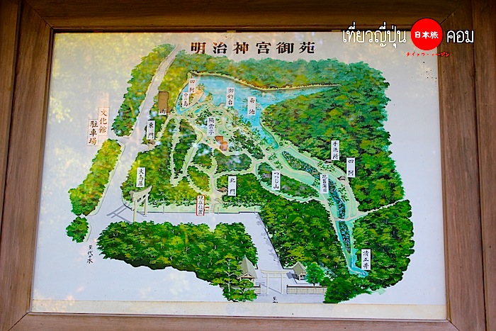 ด้านในให้ข้อมูลเกี่ยวกับ ศาลเจ้า Meiji Jingu