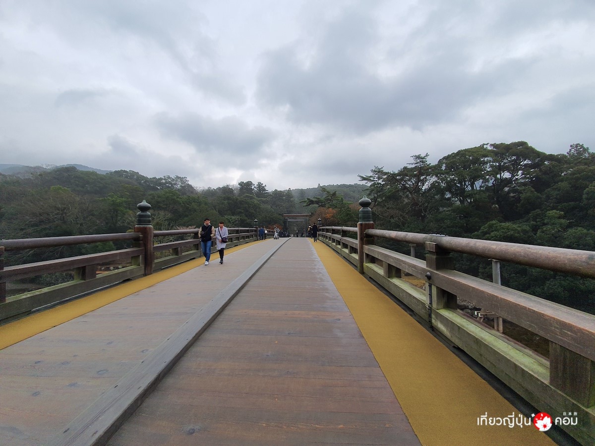จุดเด่นของศาลเจ้าแห่งนี้คือ สะพานไม้อุจิบะชิ (Uji-bashi) ข้ามแม่น้ำอิซุซู (Isuzu River) มีความยาว 100 เมตร เป็นสะพานที่มีความสำคัญ เนื่องจากมีความเชื่อว่าเป็นทางเชื่อมระหว่างโลกมนุษย์และดินแดนศักดิ์สิทธิ์
