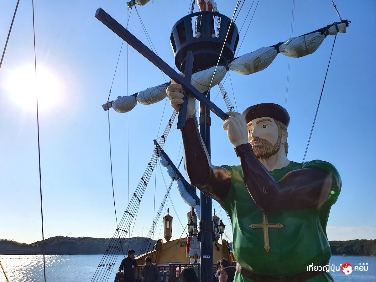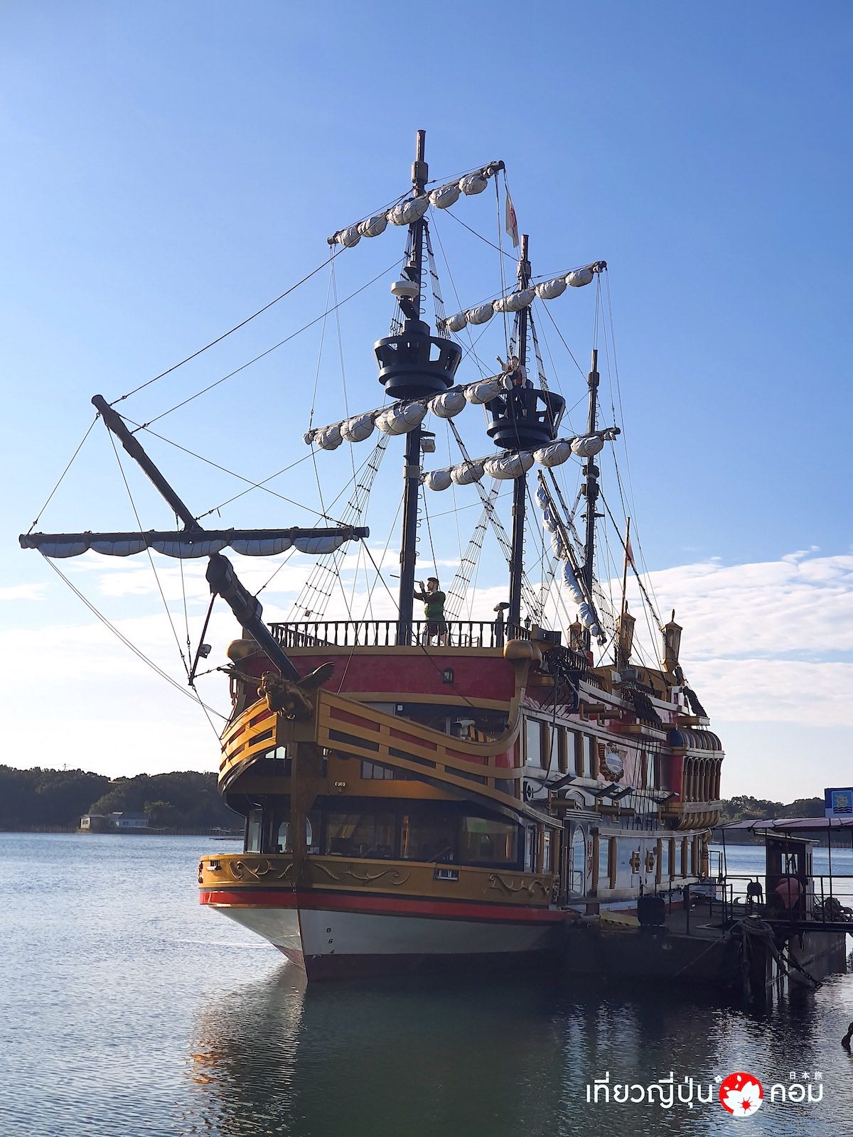 เรือสำราญ Kashikojima Espana Cruise เป็นเรือสำราญขนาดใหญ่ 3 ชั้น สร้างเลียนแบบเรือคาร์แร็ค (Carrack) ย้อนไปในยุคแห่งการสำรวจทางทะเลล่าอาณานิคมของสเปน รองรับผู้โดยสารได้ถึง 250 คน ใช้เวลาประมาณ 50 นาที ในการล่องชมทัศนียภาพสวยๆของอ่าว Ago