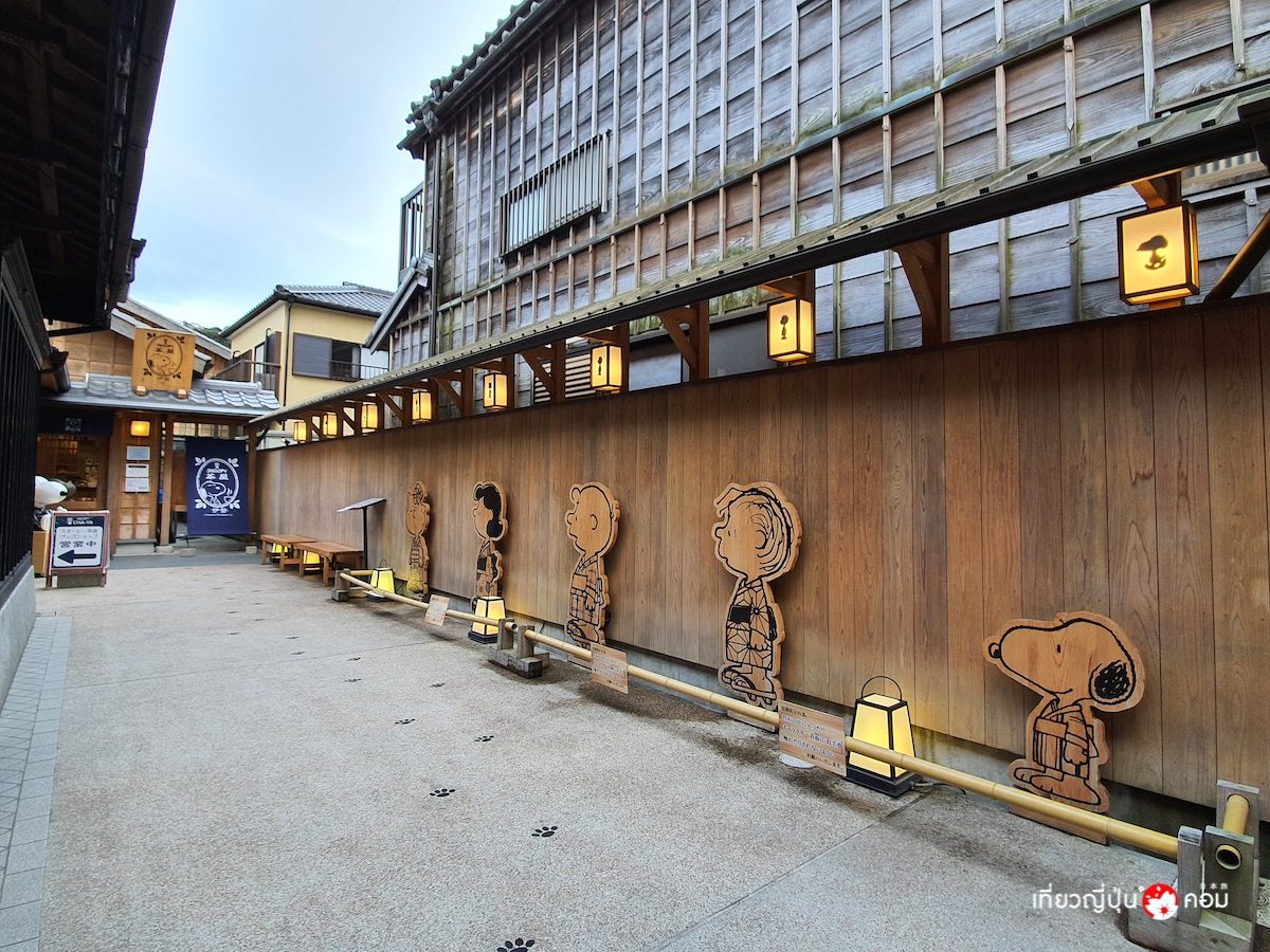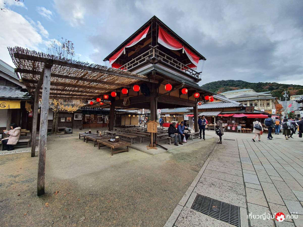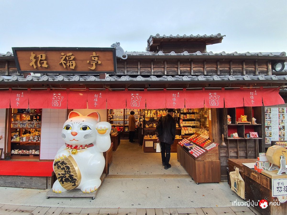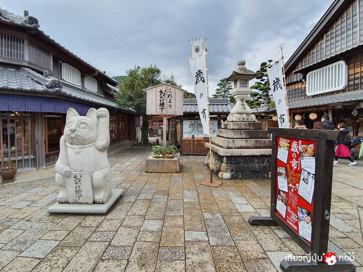 เดินเข้ามาด้านในจะพบกับตรอกโอคะเกะโยโคะโจ (Okage-yokocho) มีการแสดงพื้นเมืองให้ชมโดยไม่เสียค่าใช้จ่าย และมีร้านค้ากระจายตัวอยู่รอบๆ ตรงข้ามกับทางเข้าตรอกจะมีทางเดินเล็กๆ ไปยังลำธารที่อยู่ด้านหลัง ซึ่งมีซากุระออกดอกในช่วงฤดูใบไม้ผลิให้ชม