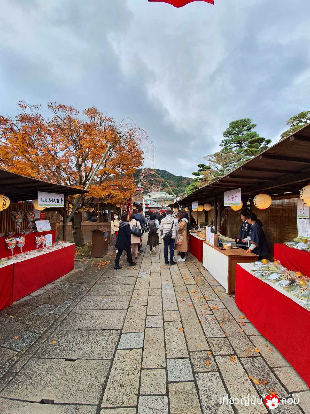 บริเวณอุทยานด้านในเข้าสู่ตัวศาลเจ้า ใบไม้เปลี่ยนสียังคงชมได้อยู่ในช่วงปลายเดือนพ.ย.