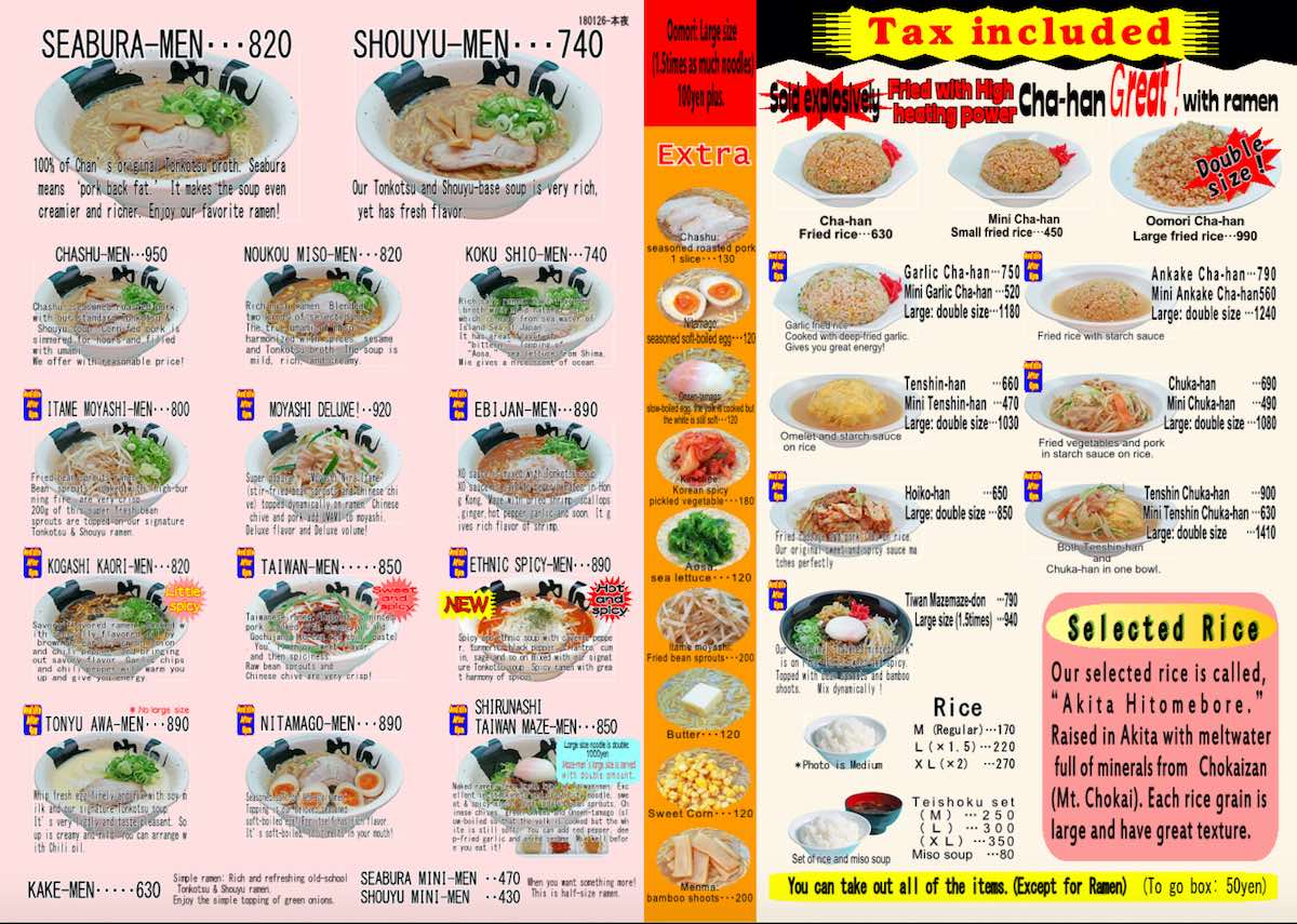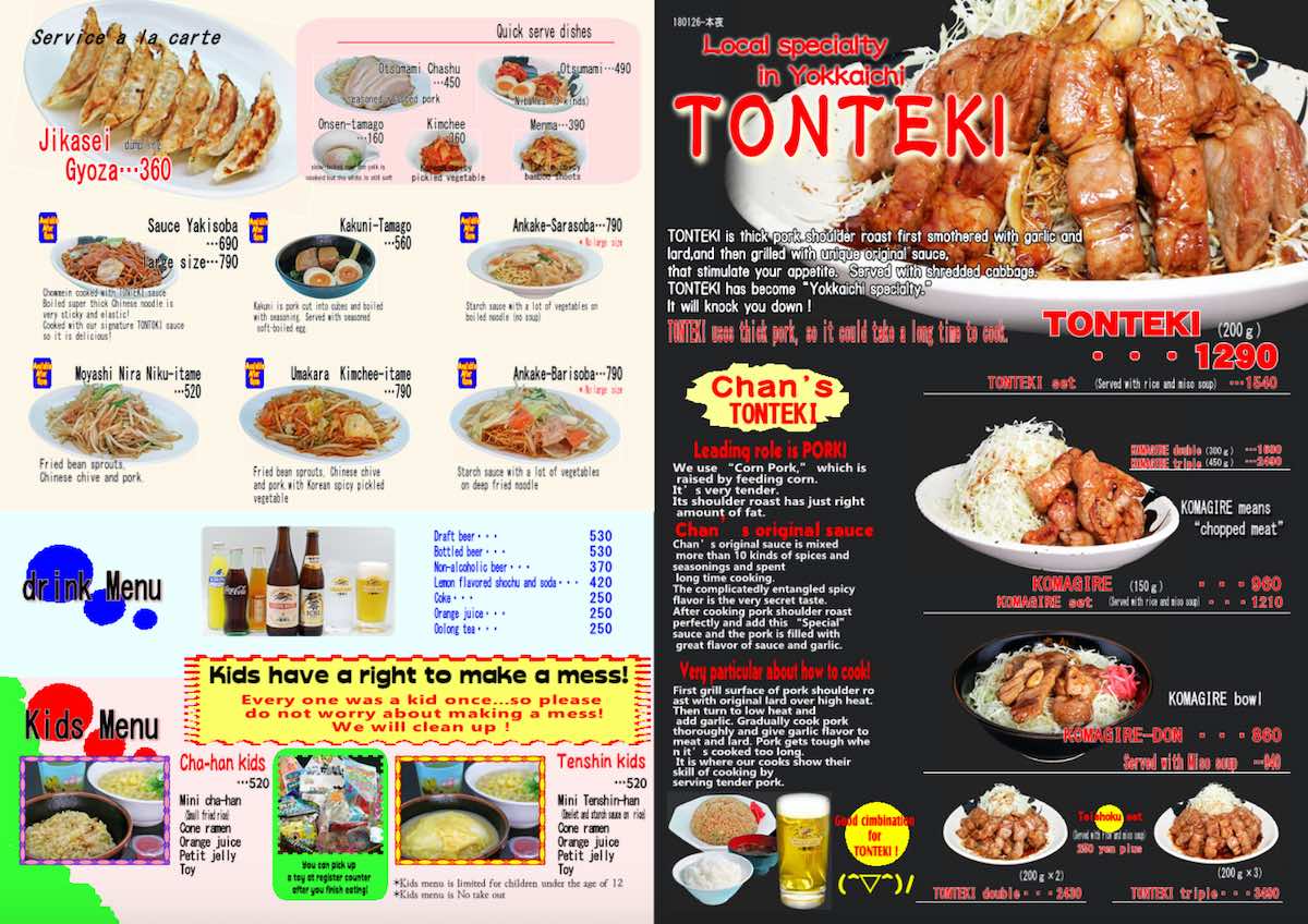 เมนูของทางร้าน Tonteki Chan Kintetsu Yokkaichi Store