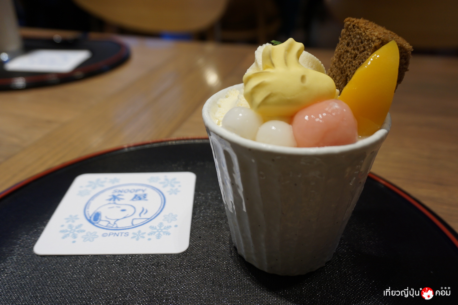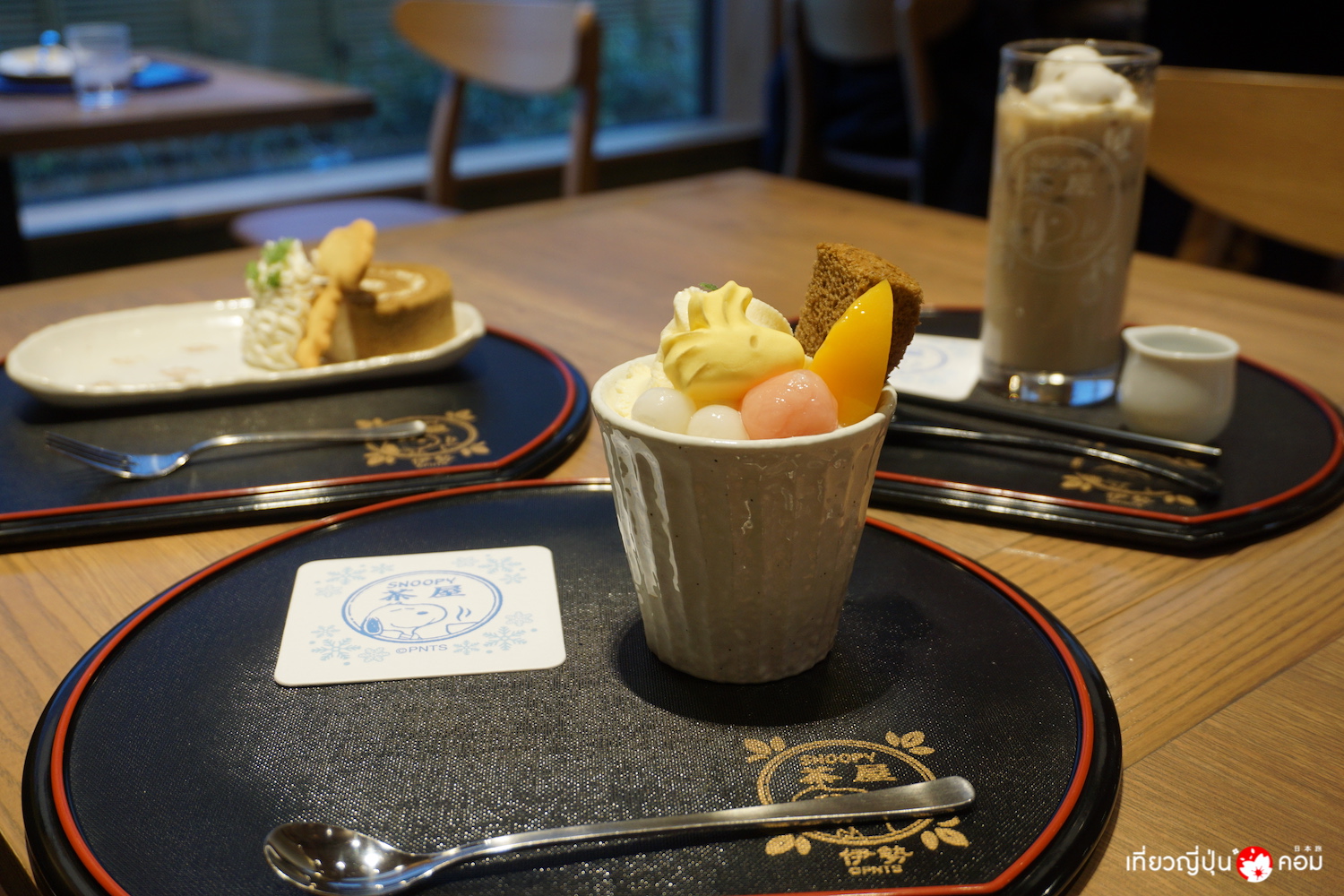 มาพร้อมกับถาดรองสำหรับเสิร์ฟชาตามแบบฉบับของโรงน้ำชา ที่มีลายสกรีน Snoopy chaya ประจำสาขา Ise