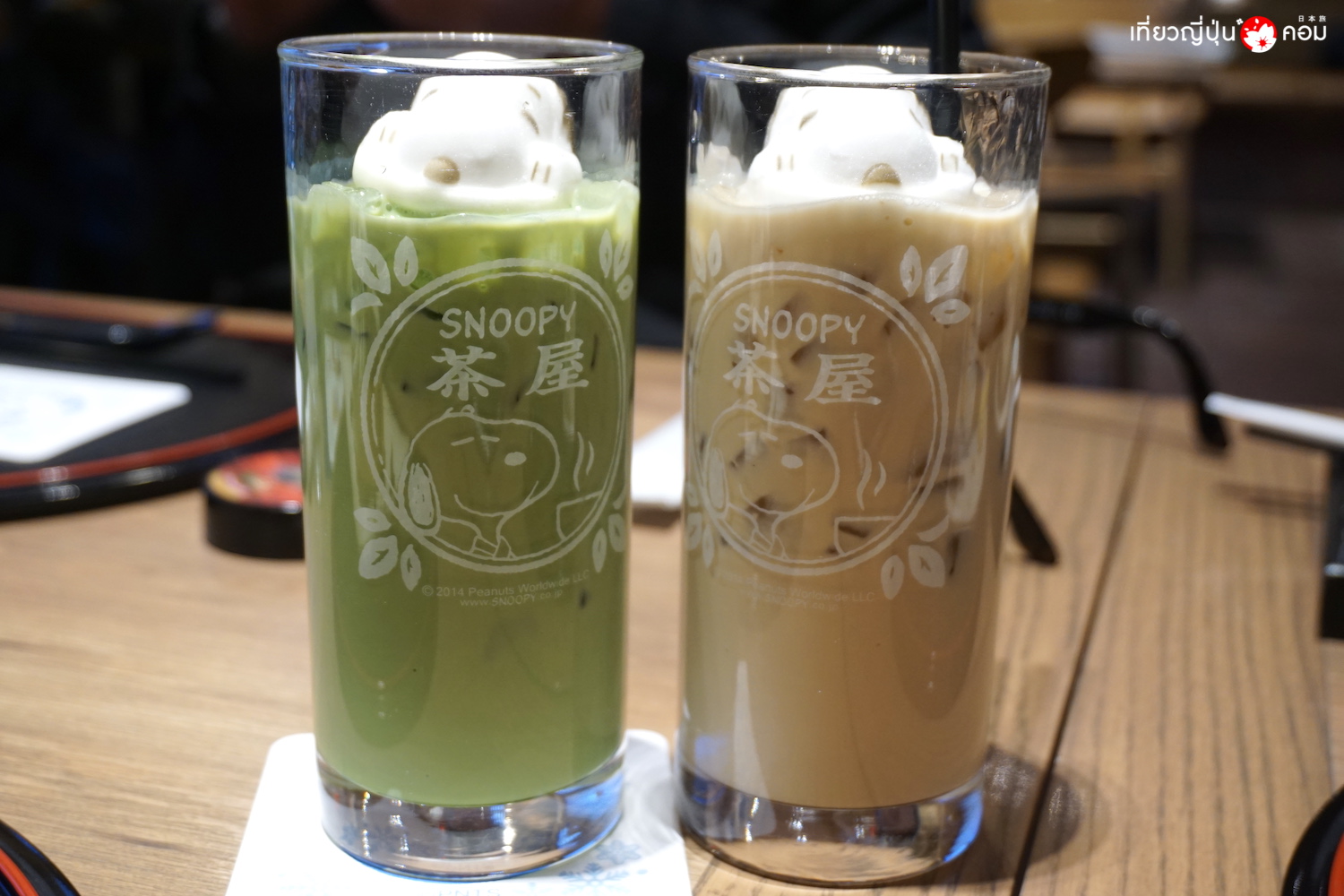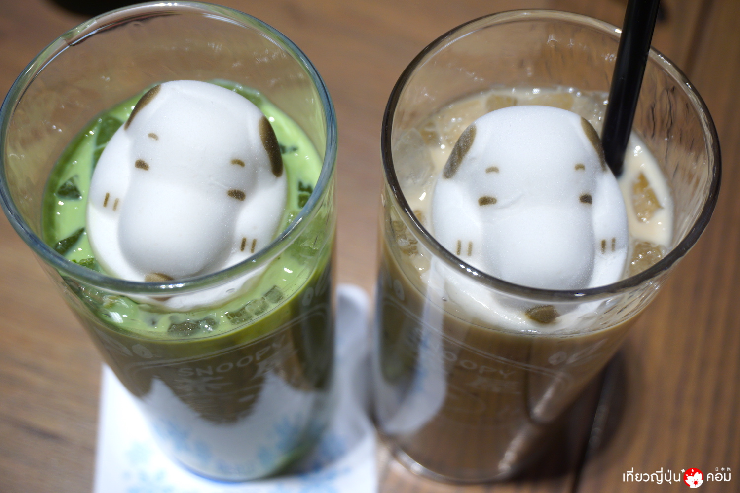 Snoopy Matcha Latte และ Snoopy Hojicha Latte แบบเย็น 800 เยน