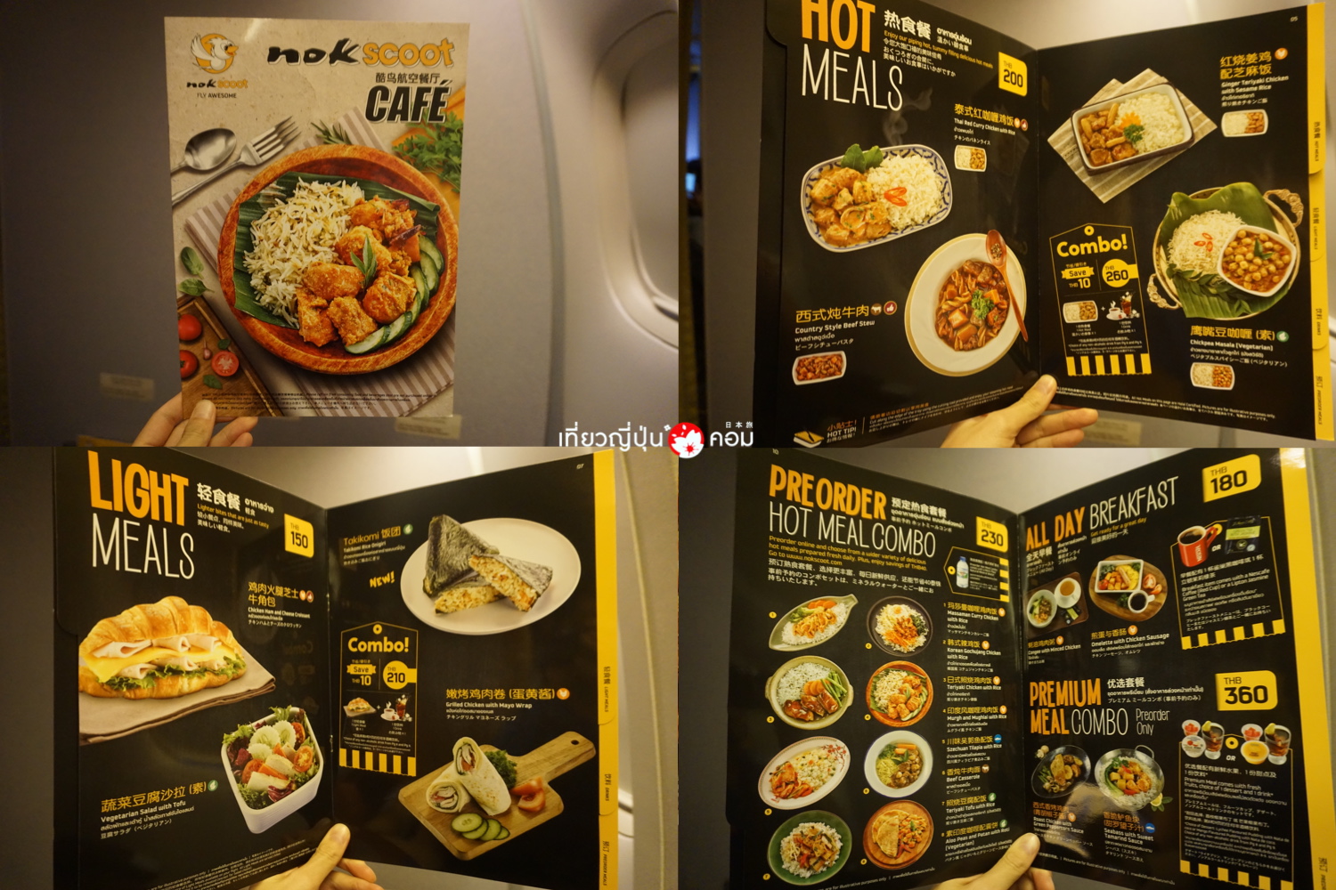 ถ้าใครหิวระหว่างไฟลท์ ก็มีเมนูจาก NokScoot Café ให้เลือกอิ่มอร่อยกับอาหารหลากหลายเมนู