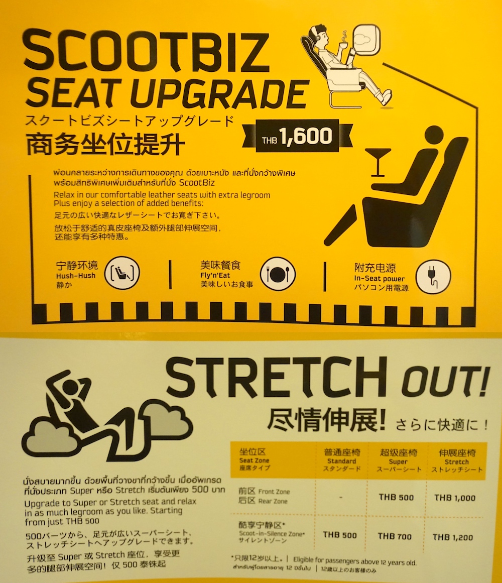 สำหรับขาไป เราเลือกที่นั่ง ScootBiz เป็นที่นั่งชั้นธุรกิจ อาจจะไม่ใช่ที่นั่งที่ปรับนอนราบได้ แต่ด้วยพื้นที่ที่กว้างก็ทำให้พักผ่อนตลอดไฟลท์ได้อย่างสบาย ที่สำคัญราคาไม่แรงไป เพราะมีโปรดีๆออกมาให้สอยตลอด