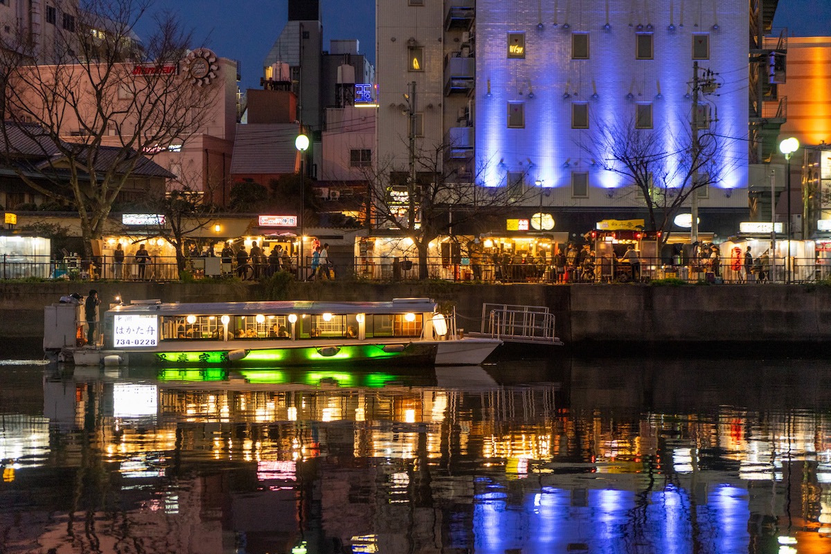 Nakasu street ถนนคนเดินเก่าแก่แห่งเมืองฮากาตะที่เต็มไปด้วยร้านอาหารสตรีทฟู้ด ท้องถิ่นสไตล์คิวชู ที่เรียกว่า “ยาไต(Yatai)” ถ้าเพื่อนๆอยากสัมผัสวิถีชีวิตแบบคนพื้นที่ต้องมาลองให้ได้เลย ที่สำคัญเมนูของกินเพียบทั้งของกินเล่นไปจนถึงอาหารจานหลัก และที่ขาดไม่ได้สำหรับบรรยากาศแบบนี้ก็คือเบียร์ซักแก้วกับเพื่อนรู้ใจนั่นเอง