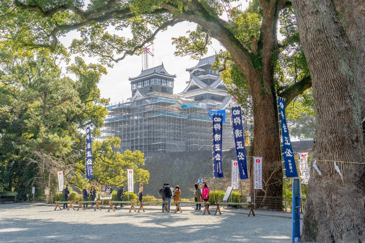 Kumamoto Castle ปราสาทคุมาโมโตะที่มีความยิ่งใหญ่เป็นอันดับต้นๆของญี่ปุ่น โดยตัวปราสาทจะออกโทนสีขรึมเน้นโทนขาวเทาดำ มีการตกแต่งอย่างปราณีตรอบปราสาท บวกกับการมีสวนรอบๆที่ช่วงฤดูใบไม้ผลินี่ถือว่าเป็นอีกหนึ่งจุดยอดนิยมในการชมซากุระของเมืองเลยก็ว่าได้ อย่างไรก็ตามเป็นที่น่าเสียดายจากเหตุการแผ่นดินไหวในปี 2016 ส่งผลให้ตัวปราสาทได้รับความเสียหายหลายส่วน โดยปัจจุบันทางการได้ดำเนินการซ่อมแซมอยู่อย่างต่อเนื่อง และได้ข่าวว่าเส้นทางทัวร์ใกล้เสร็จแล้วซึ่งจะทำให้เพื่อนๆสามารถแวะเข้ามาเยี่ยมชมความยิ่งใหญ่ของปราสาทแห่งนี้ได้ใกล้มากขึ้น
