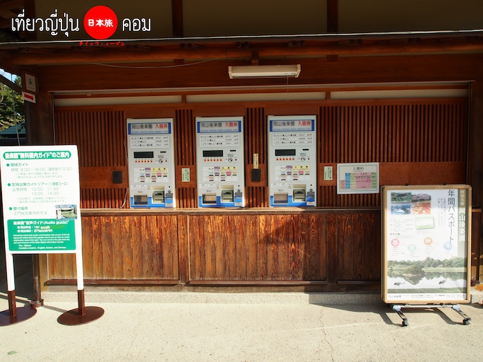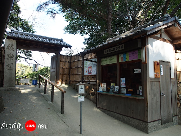 สวนนี้มีชื่อว่า Korakuen ค่าเข้าชม 400 เยน ถ้าใครซื้อตั๋วเข้าชมพร้อมกับปราสาทราคา 560 เยนมาแล้ว ยื่นตั๋วให้เจ้าหน้าที่ดูได้เลย สวนเปิดให้เข้าชมทุกวัน เปิดตั้งแต่ 7.30-18.00 น. (ช่วงวันที่ 1 ตุลาคม – 19 มีนาคม เปิด 8.00-17.00 น.)