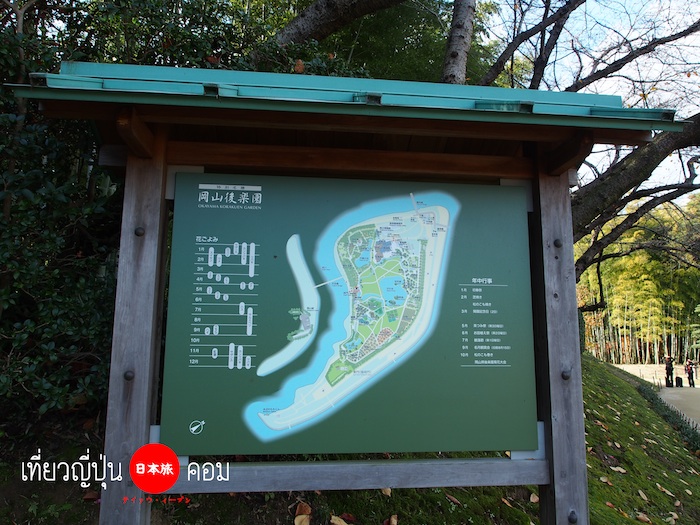 แผนผังของสวน Korakuen ที่แสนกว้างใหญ่ไพศาล เดินเที่ยวชมให้ครบรอบ ต้องมีอย่างน้อยสัก 2 ชั่วโมงนะครับ