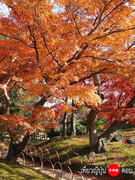Korakuen เป็นสถานที่ที่เหมาะแก่การชมใบไม้เปลี่ยนสี โดยในแต่ละปีช่วง กลางเดือนตุลาคม จนถึง ต้นธันวาคม ใบไม้ท่สวนแห่งนี้จะสลับกันผลัดเปลี่ยนสีสันสวยงามมาก นี่ขนาดช่วงที่ไปมา เป็นต้นเดือนธันวา ซึ่งถ้าเป็นที่อื่นคงจะทยอยร่วงไปกันหมดแล้ว แต่ที่สวนแห่งนี้ ยังมีใบไม้ทั้งเหลือง ส้ม แดง ให้ชมกันอย่างจุใจ