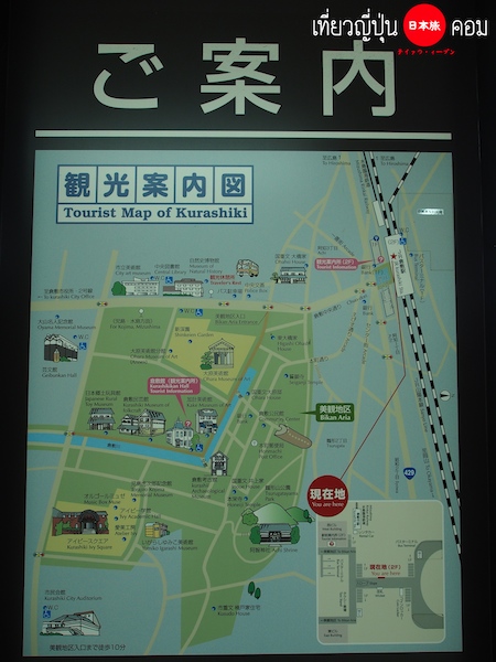 เดินทางมาถึงสถานีใหญ่ทุกครั้งต้องมองหาป้ายเครื่องหมายคำถามตามไปขอข้อมูลที่ Tourist Information Center (TIC) กันซะก่อน ตั้งอยู่ด้านนอกสถานี บนสะพานลอยก่อนลงไปด้านล่าง ให้เดินมาทางขวาก็จะเจอ ที่นี่มี Walking Map แบบละเอียดยิบ เอาไว้เดินเที่ยวในตัวเมือง Kurashiki ได้อย่างสบายๆไม่ต้องกลัวหลง มีฉบับภาษาอังกฤษให้บริการนักท่องเที่ยวต่างชาติด้วย