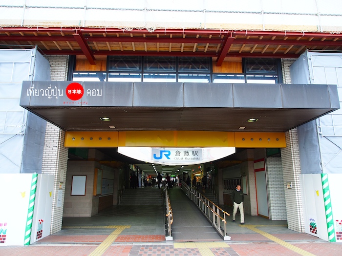 จากสถานี Okayama นั่งรถไฟต่อมาเที่ยวที่เมือง Kurashiki 倉敷 ที่อยู่ใกล้ๆกัน สามารถวางแผนรวบทั้ง 2 เมืองไว้เที่ยวภายในวันเดียวกันได้ วิธีการเดินทางจาก สถานี JR Okayama นั่งรถไฟสาย JR Sanyo ใช้เวลาเพียง 16 นาที (ค่ารถ 320 เยน) ก็มาถึงแล้ว