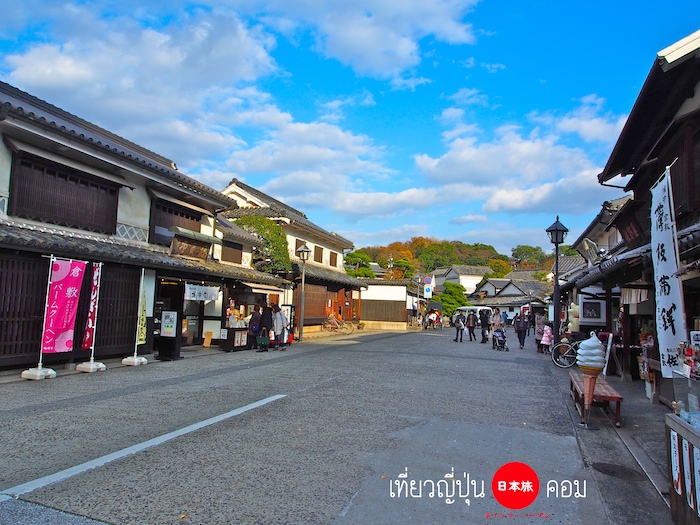 เสร็จแล้วเราก็ตามป้าย เดินเที่ยวในเมืองกันเลย เป้าหมายของของเราในวันนี้คือ Bikan Historical Quarter 美観地区 ที่เป็นจัตุรัสเมืองเก่า อนุรักษ์มาตั้งแต่สมัยเอโดะที่มีอายุยาวนานกว่า 300 ปี