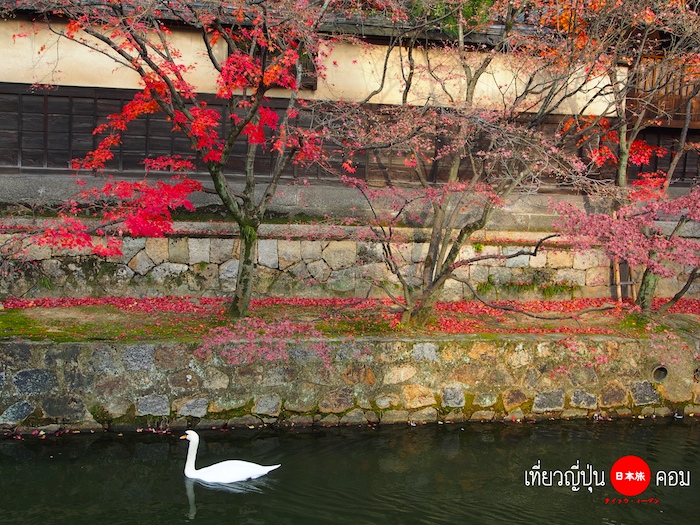 ระหว่างทางเดินไปใจกลางของ Bikan Historical Quarter เราก็จะได้เห็นอาคารไม้เก่าๆที่ปรับแต่งให้เข้ากับยุคสมัยแต่ยงคงกลิ่นอายเดิมไว้ได้อย่างลงตัว ใบไม้ที่เปลี่ยนเป้นสีแดงจัดสลับกับส้มก็ช่วยเสริมบรรยากาศให้ออกมาดูสวยคลาสสิคแบบญี่ปุ่น