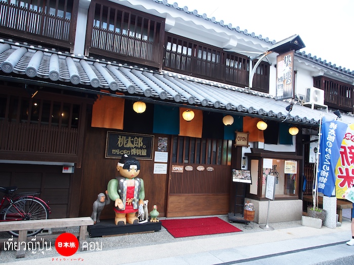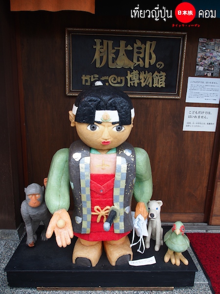 พิพิธภัณฑ์อีกหนึ่งแห่งที่น่าสนใจมากคือ Momotaro Museum 桃太郎のからくり博物館 ต้องเดินอ้อมมาทางด้านหลัง ไม่ได้ตั้งอยู่ติดกับคลองเหมือนกับพิพิธภัณฑ์อื่นเค้า หลายคนเข้าใจว่ร้านนี้เป็นเพียงร้านค้าหรือคาเฟ่ที่เอาแค่ตุ้กตาโมโมทาโร่มาตั้งหน้าร้านเท่านั้น แต่จริงๆแล้วด้านในนั้นจัดแสดงเรื่องราวของโมโมทาโร่ออกมาได้อย่างสุดประทับใจ ชนิดที่ว่าเข้าไปแล้วได้รู้เรืองของโมโมทาโร่ตั้งแต่ต้นจนจบ พระเอกของจังหวัด Okayama นั่นเอง เหมาะสำหรับคุณหนูๆนะครับ ค่าเข้าชม ผู้ใหญ่ 600 เยน, เด็กนักเรียน 400 เยน และเด็กเล็ก 100 เยน