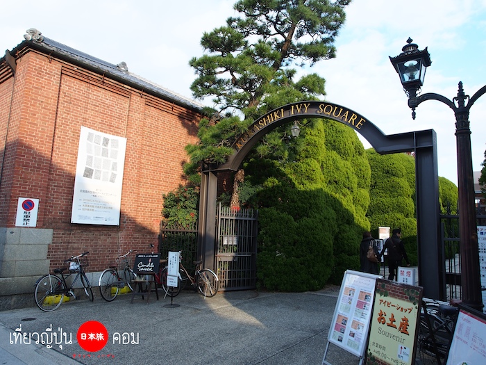 ต่อจากนั้นเดินตรงขึ้นมาจะพบกับ Kurashiki Ivy Square จัตุรัสที่มองเข้าไปจะพบกับอาคารอิฐแดงเรียงรายกันอยู่มากมาย เป็นทั้ง ร้านอาหาร ร้านค้า พิพิธภัณฑ์ และ โรงแรม สถานที่แห่งนี้ในอดีตเป็นสำนักงานที่ใช้ในการควบคุมดูแลการค้าข้าวของรัฐบาลนั่นเอง