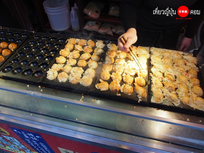 ด้านหน้าร้านเปิดเตาโชว์เทคนิคการทำทาโกยากิ สามารถยืนชมระหว่างรอสั่งได้เลย