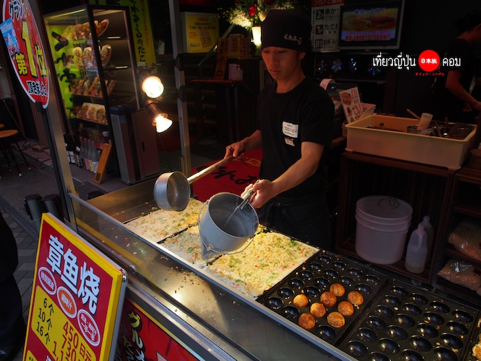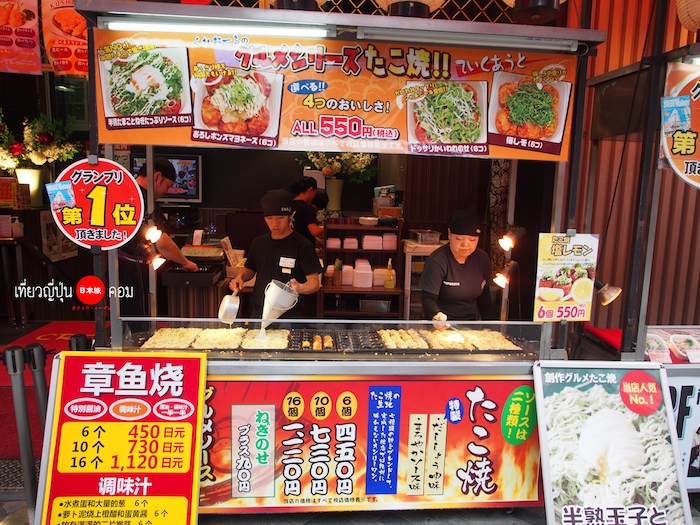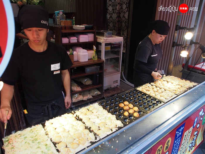 ระหว่างทางที่เดินหาร้านทาโกะยากิเด็ดๆสักร้าน มีหลายร้านที่คนเข้าคิวต่อแถวกันยาวเหยียด นั่นอาจจะเป็นเพราะทางร้านทำสดใหม่ตลอดเวลา ถ้าลูกค้าจึงจะค่อยเริ่มเทแป้งและปรุงรสใส่ส่วนผสมกันตรงนั้น จึงทำให้ต้องรอนานเป็นพิเศษ ส่วนบางร้านนั้นเค้ามีชื่อเสียงจริง อาจจะเป็นร้านเก่าแก่ หรือเป็นร้านเปิดใหม่ที่เพิ่งมีรายการไปถ่ายทำ จนเกิดเป็นกระแสทำให้คนมาต่อคิวกันลองชิมนั่นเอง และอีกร้านหนึ่งที่เปิดมาตั้งแต่ปี 1999 เคยชนะเลิศการแข่งขัน Granprix และโด่งดังนับตั้งแต่นั้นมาก็คือร้าน Creo-ru ที่มีทาโกยากิไม่เหมือนร้านไหนในโอซาก้า (สาขาที่พามาชิมในวันนี้อยู่ที่โดทงโบริ เปิดตั้งแต่ปี 2007)