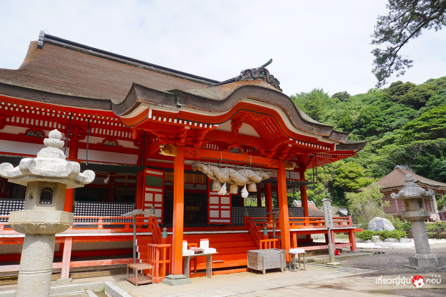 สำหรับสถานที่แห่งแรกที่เราแวะกันคือ ศาลเจ้าฮิโนมิซะกิ (Hinomisaki Shrine) ศาลเจ้าแห่งสร้างขึ้นเพื่อเป็นสถานที่สถิตของ เทพเจ้าอะมะเทระสุ (Amaterasu Omikami) เทพเจ้าปกป้องตอนกลางคืน หรือมีอีกนามว่า Goddess of sun และมีศาลเล็กที่ตั้งอยู่บนเนินภายในศาลเจ้า เป็นที่สถิตของเทพเจ้าสุซาโนะโอ (Susano-o no Mikoto)
