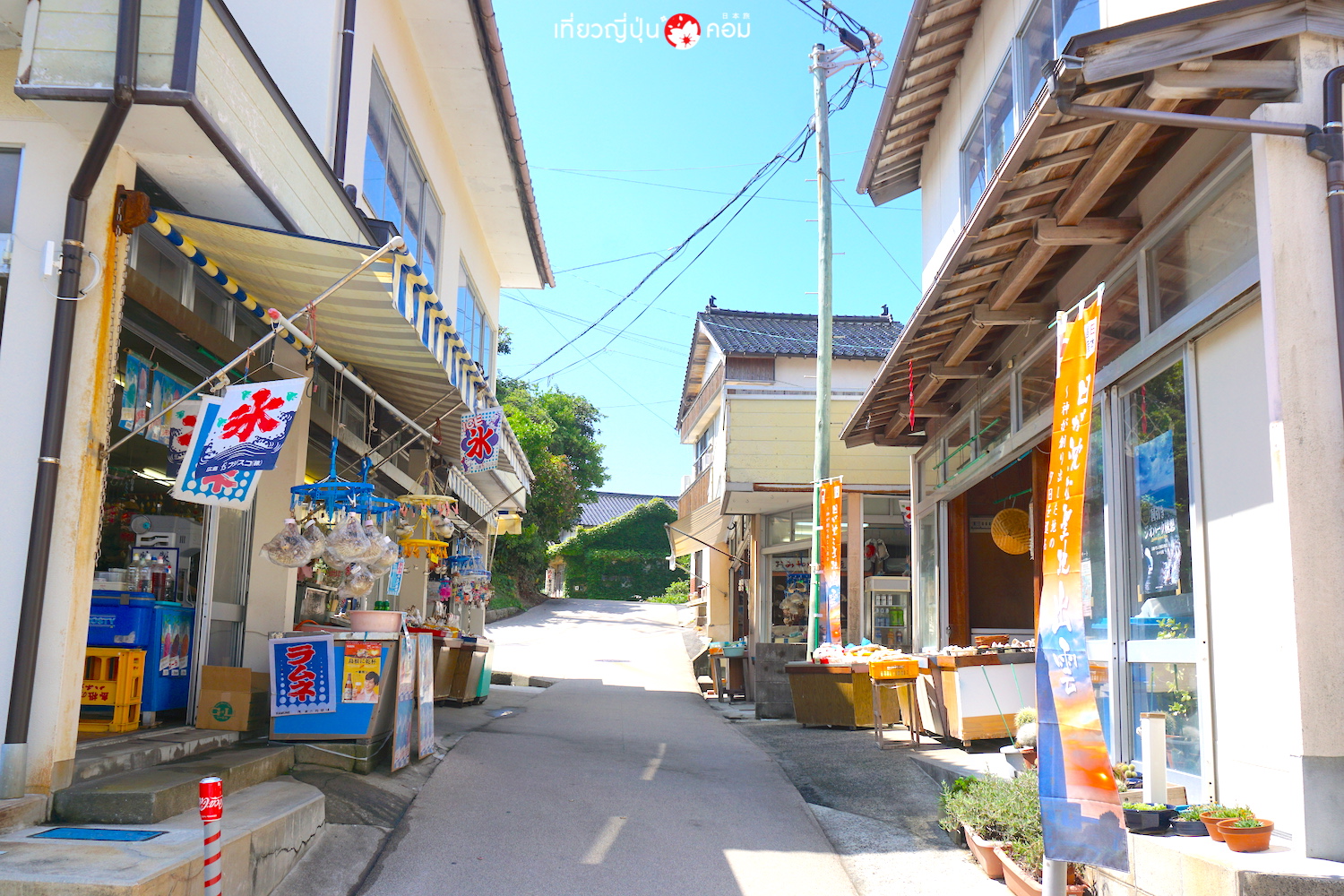 ระหว่างทางจะได้พบกับบ้านเรือนและร้านค้าในสไตล์เกาะริมทะเล