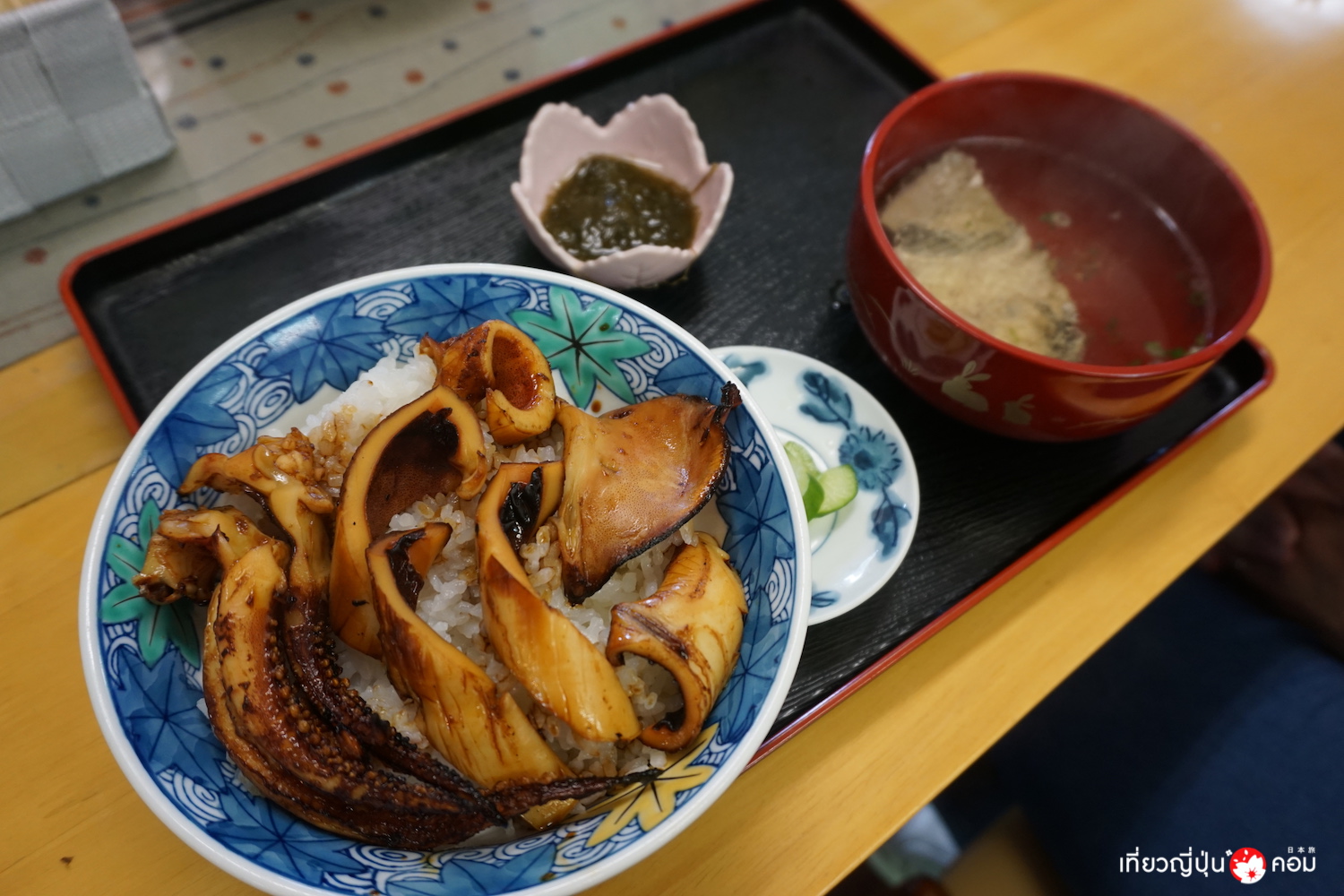 – Yakiikadon 1000 เยน ปลาหมึกย่างราดซอส ซอสเค็มกำลังดี ปลาหมึกรอบอร่อย ไม่เหนียว