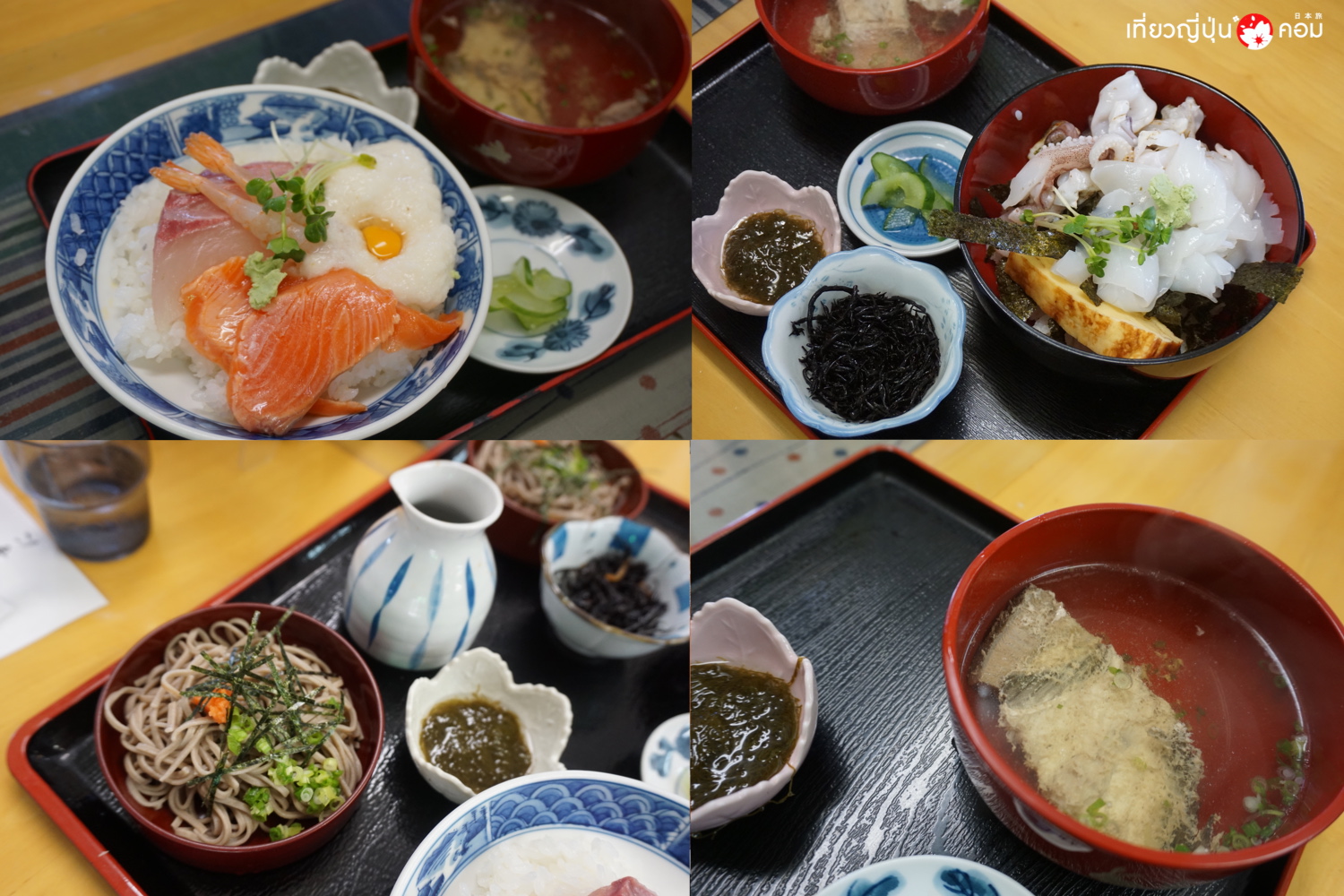 – Misakidon 1200 เยน ปลาแซลมอน กับ ปลาคัมปาจิ เปลี่ยนไปตามฤดู ใช้ปลาที่จับได้ในบริเวณนี้ แต่จุดเด่นคือ yamaimo ที่เอามาฝนจนละเอียดเป็น tororo