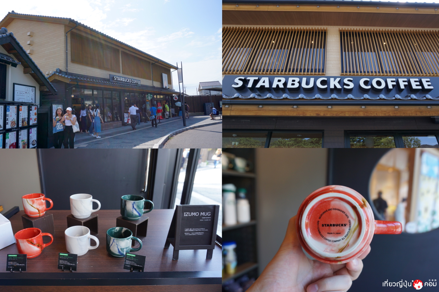และไม่ควรพลาดแวะ Starbucks สาขาด้านหน้าศาลเจ้าอิซุโมะ นอกจากจะดีไซน์ออกมาให้เข้ากับบรรยากาศโดยรอบแล้ว ยังมีสินค้าพิเศษ แก้วอิซุโมะ (Izumo Mug) ที่วางจำหน่ายเฉพาะที่นี่อีกด้วย ที่สำคัญแก้วนี้ Made In Japan คู่ควรแก่การจับจองอย่างยิ่ง