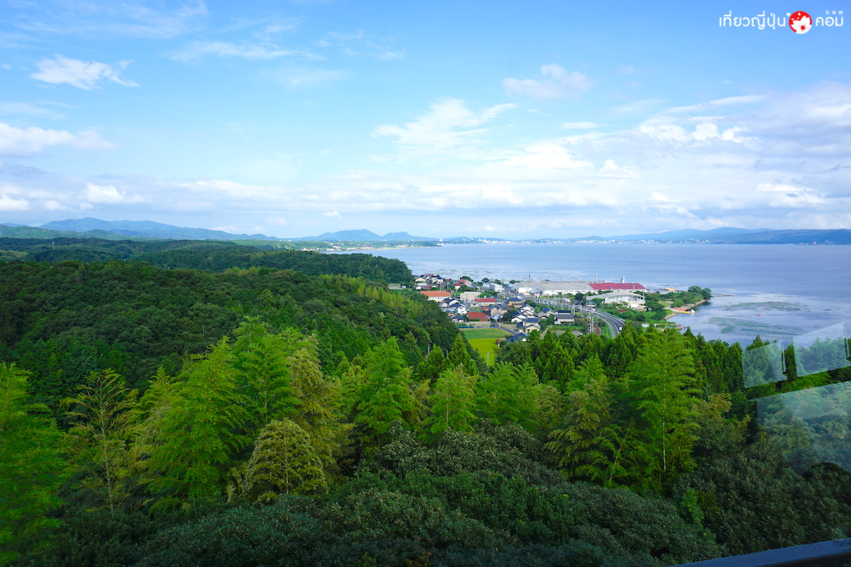 และด้านบนจุดชมวิว สามารถขึ้นมาชมทิวทัศน์อันสวยงามของทะเลสาบชินจิได้ (มีบันไดเลื่อนที่เหมาะสำหรับผู้ใช้บริการรถเข็น)
