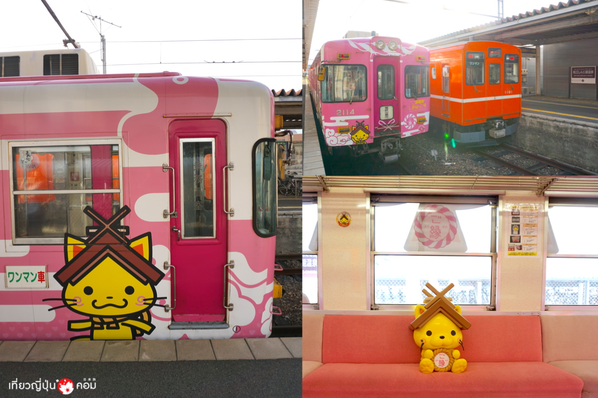 รถไฟสาย Ichibata จะมีขบวนพิเศษที่ตกแต่งทั้งคันเป็นสีชมพู และมีลายของชิมะเนกโกะ มาสคอตชื่อดังประจำจังหวัดชิมะเนะ เป็นหลัก ไม่ใช่เพียงภายนอกขบวนเท่านั้น ภายในขบวนก็มีกิมมิคน่ารักมากมายที่ให้ลูกค้าที่ใช้บริการได้ลองตามหา ไม่ว่าจะเป็น ห่วงจับลายหัวใจ ม่านลายหัวใจ เป็นต้น