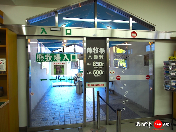 ทางเข้าฟาร์มหมี อยู่ด้านในร้านขายของที่ระลึก ค่าเข้าชม ผู้ใหญ่ 850 เยน เด็ก 500 เยน