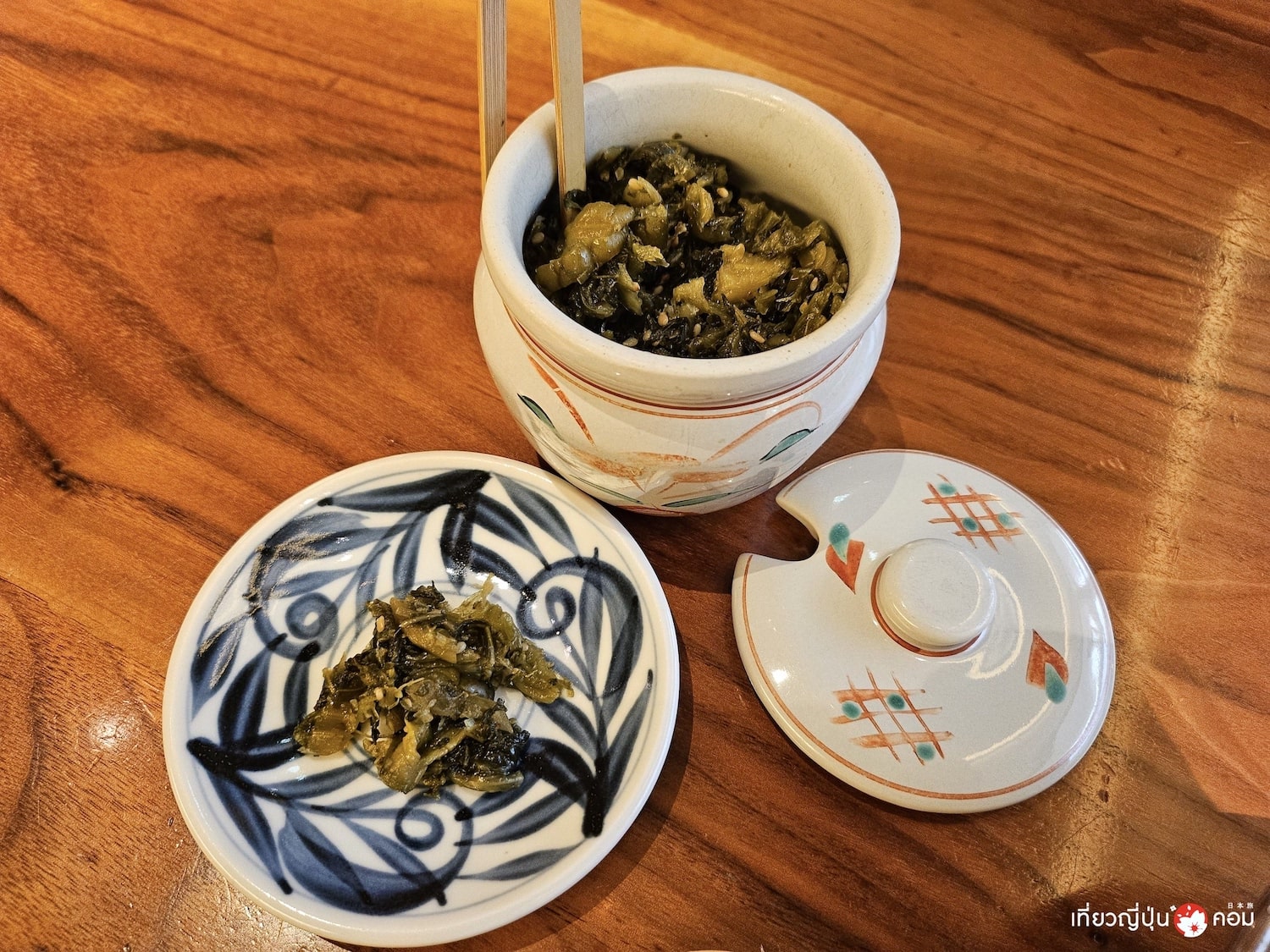 ผักดองเป็นสูตรเฉพาะของทางร้าน รสชาติเค็มไม่เกินไป ทานเล่นได้เรื่อยๆ