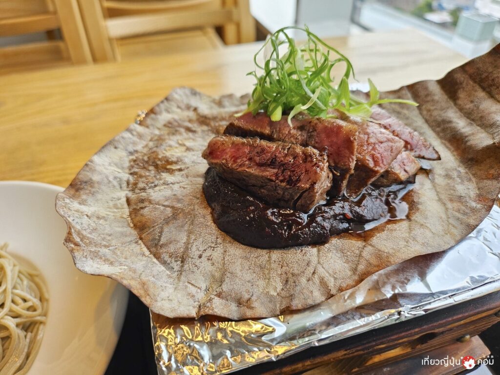 วันนี้เราลองเมนู 牛フィレ肉の朴葉焼きとお蕎麦 เนื้อฟิเลย่างบนใบโฮบะ ราดซอสมิโซะเข้มข้น เนื้อนุ่มสุดๆ รับรองว่าถูกใจสายเนื้อแน่นอน