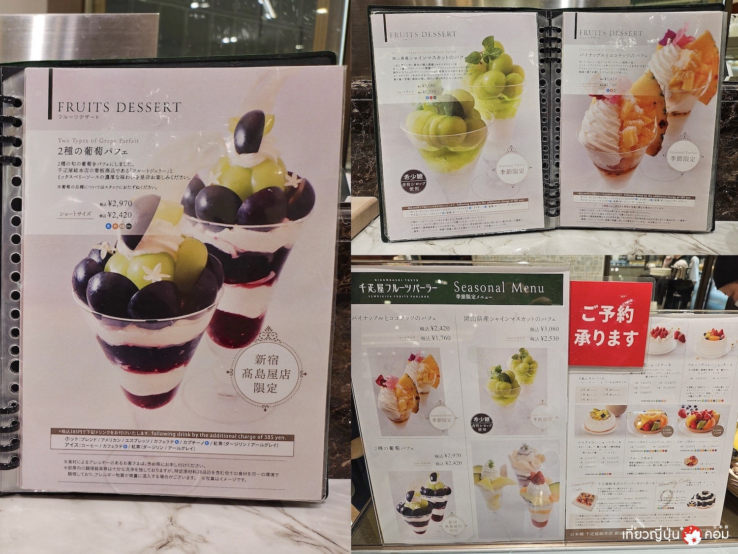 ส่วนใครที่อยากจะนั่งทานที่ร้าน เค้ามีมุมคาเฟ่ Fruits Palour ให้สั่งเมนูพิเศษตามฤดูกาล และทำสดๆให้เรากินได้ด้วย อย่างช่วงที่เราไปจะเป็นฤดูกาลขององุ่นหลากสายพันธุ์