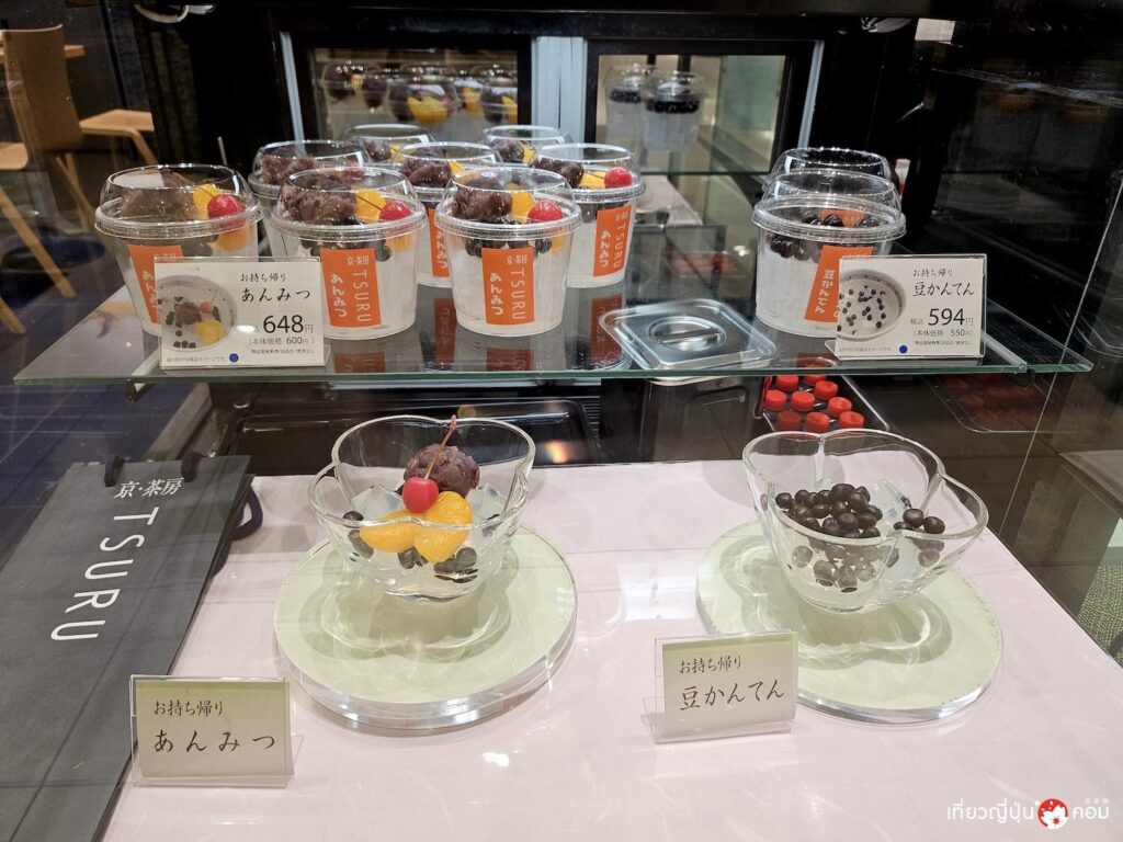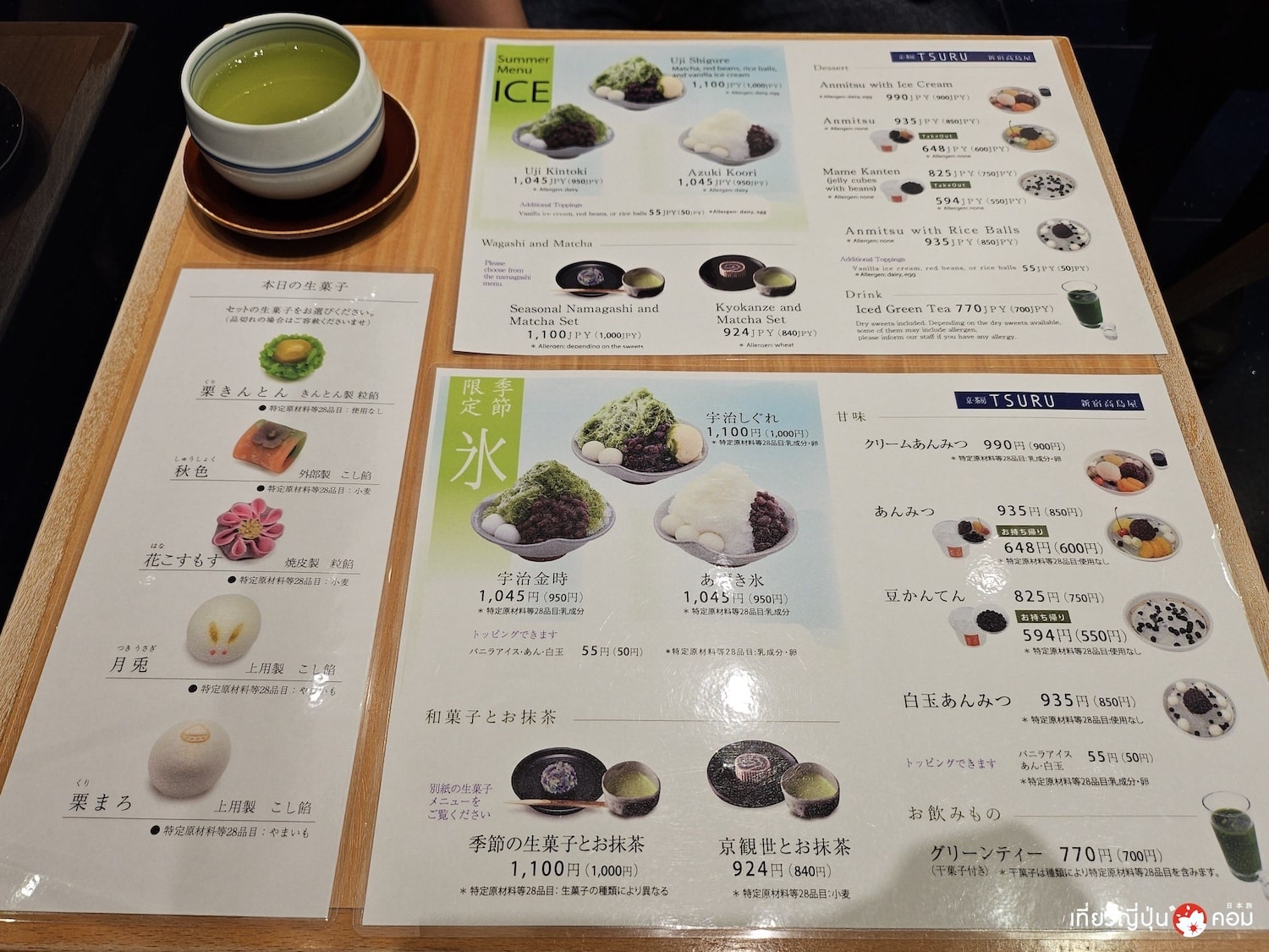 ในส่วนเมนูของคาเฟ่ มีขนมหวานออริจินอลอย่าง อันมิตสึ (Anmitsu) และเมนูตามฤดูกาล อย่างช่วงที่เราไปจะมีเมนูซัมเมอร์เป็น คากิโกริมัทฉะ