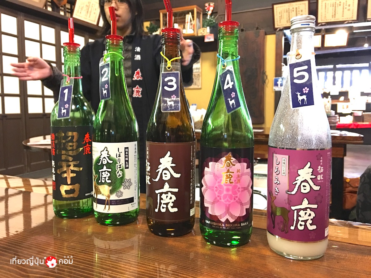 นักท่องเที่ยวสามารถทดลองชิมสาเกชื่อดังของเมือง 5 ชนิด