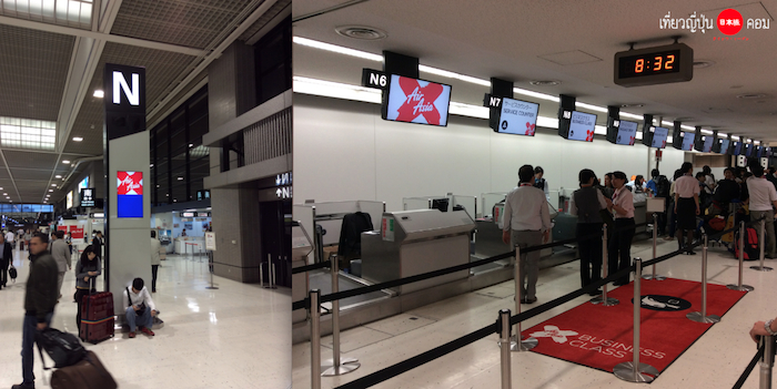 ที่สนามบินนาริตะจะใช้เคาเตอร์เช็คอินแถว N แต่พอไปถึงจะมองหาแถวไม่เจอไม่ต้องตกใจนะครับ ให้ตามป้ายเล้กๆมาที่บอกให้เราเดินไปด้านข้าง เพื่อออกจากประตูเพื่อไปเข้าแถวต่อคิวเช็คอินกันครับ ขาออกจากญี่ปุ่นค่อนข้างเข้มงวดเรื่องน้ำหนักกระเป๋า รวมไปถึงขนาดและจำนวนกระเป๋าที่สามารถถือขึ้นเครื่องได้ ต้องเตรียมตัวกันมาให้ดีนะครับ ควรซื้อน้ำหนักล่วงหน้าก่อนการเดินทาง เพื่อที่จะได้ไม่ถูกปรับในราคาที่สูงกว่า และไม่ทำให้เสียเวลาด้วยครับ