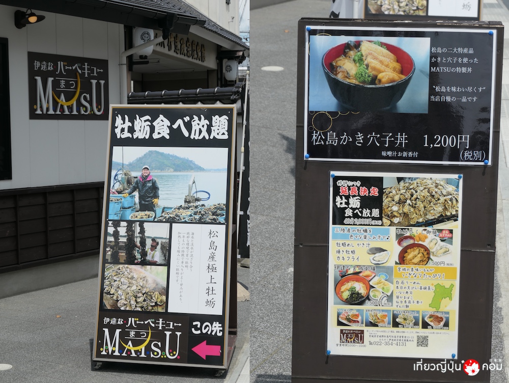 ขึ้นชื่อว่าถ้ามาเกาะมัตสึชิมะแล้ว ต้องจัดหอยนางรมที่สายหอยต้องฟินกันถ้วนหน้า เพราะที่นี่เราสามารถเลือกร้านที่ทานได้ไม่อั้น ในราคาสุดคุ้ม โดยเราจะได้ทานหอยนางรมย่าง รสสัมผัสนุ่มนวล ไม่คาว เพราะว่าสดมากจริงๆ โดยวันนี้เราเลือกร้านที่ชื่อ Matsu かき小屋まつ