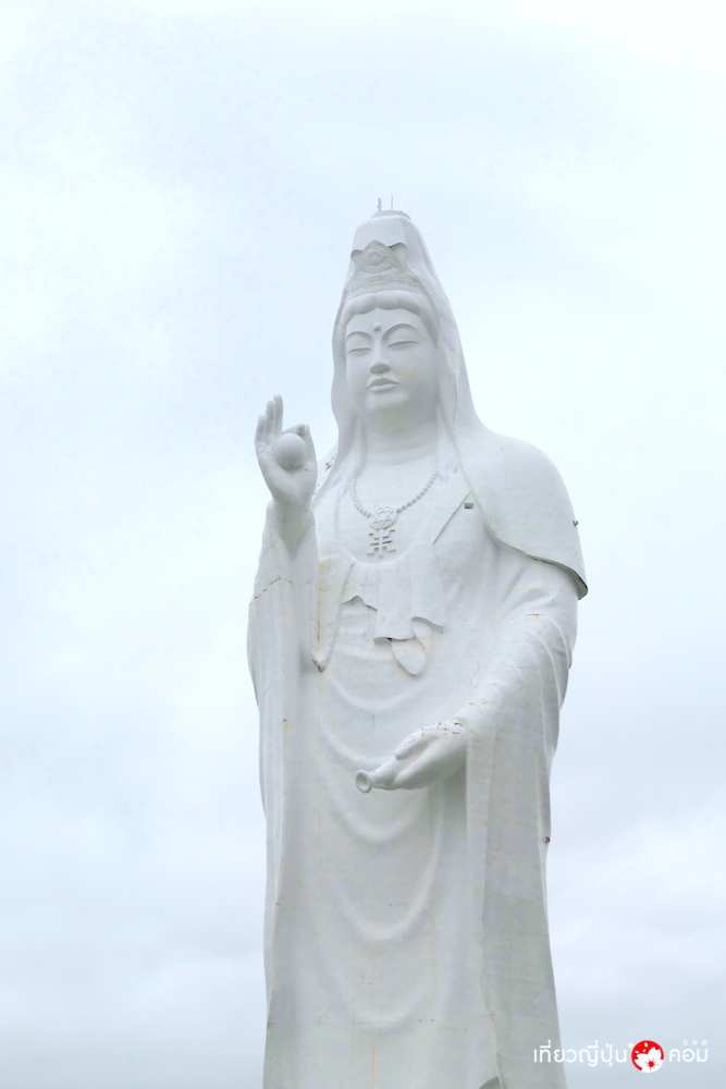 จากนั้นเราเดินทางไปสักการะเทวรูปองค์เจ้าแม่กวนอิมที่ วัดไดคันมิตสุจิ (Daikanmitsuji) ตั้งอยู่ในเขตอิซุมิ (Izumi) มีความสูงราว 100 เมตร ถูกสร้างขึ้นในปีค.ศ. 1991 เพื่อเป็นการระลึกถึงการพัฒนาของเมือง ถือเป็นรูปปั้นเจ้าแม่กวนอิมที่มีความสูงที่สุดในญี่ปุ่น และเป็นรูปปั้นขนาดใหญ่ที่สูงเป็นอันดับที่ 6 ของโลก
